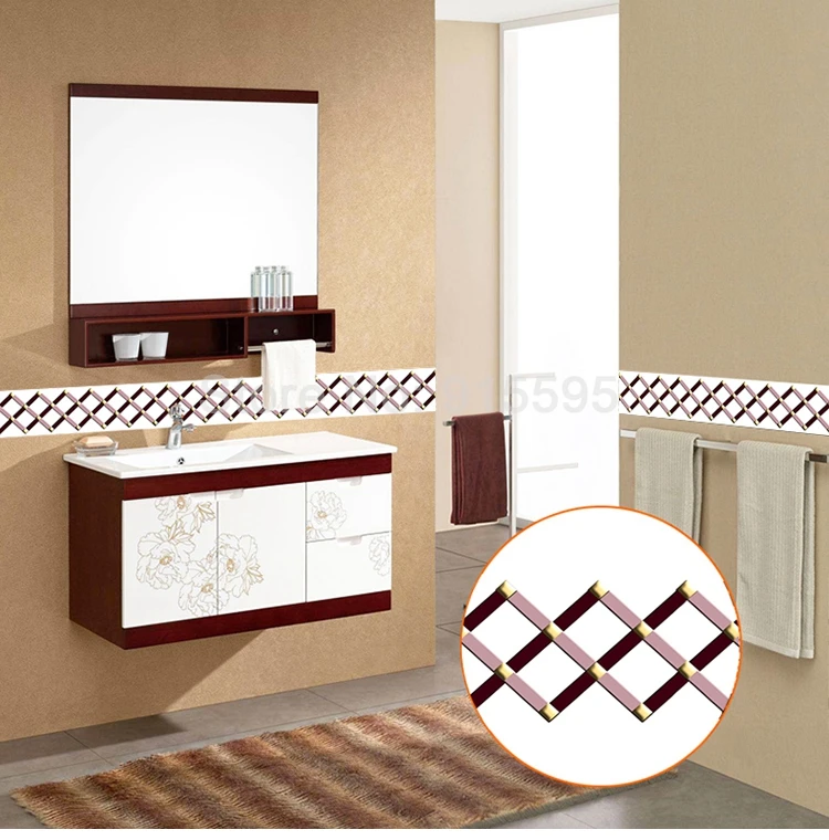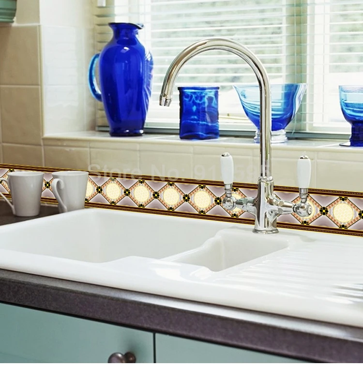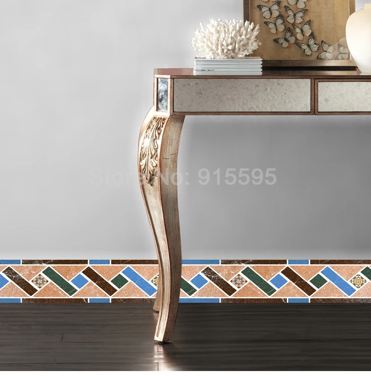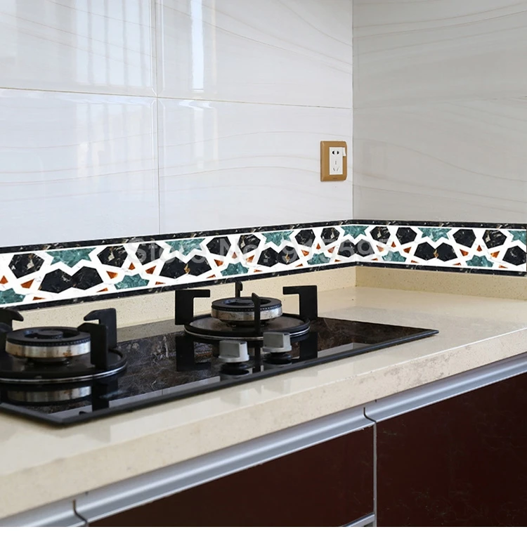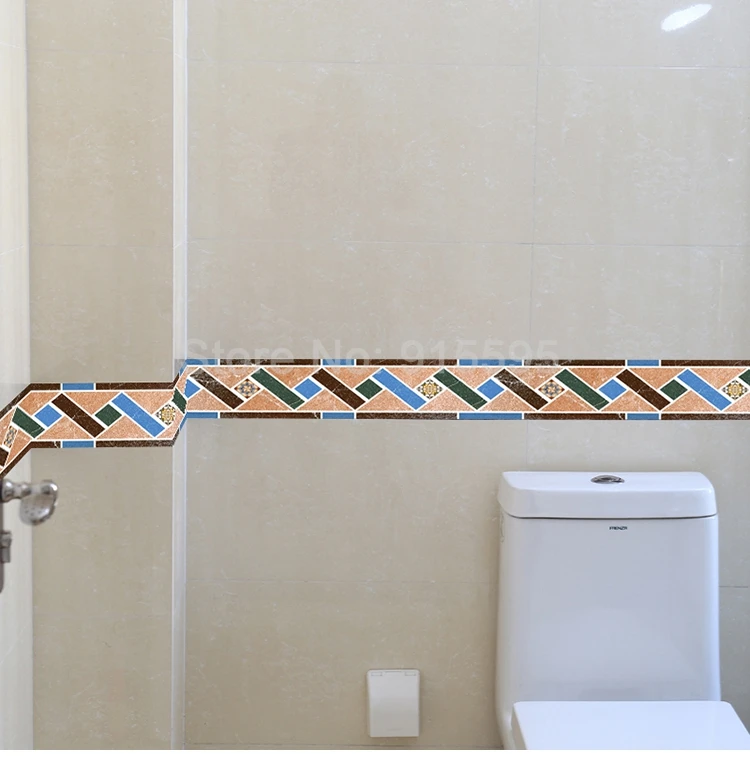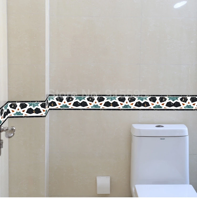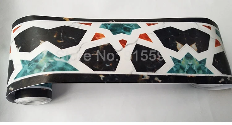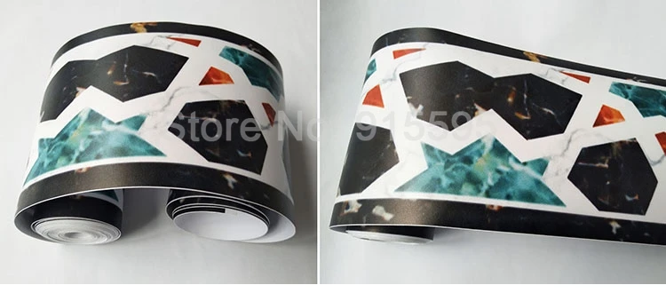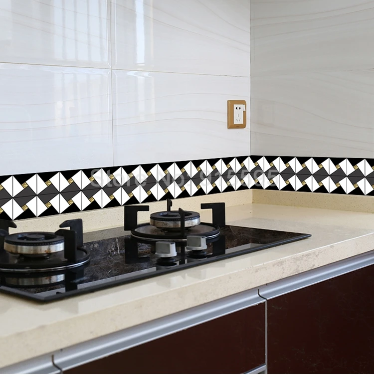 ورق حائط ذاتي اللصق بنمط هندسي ، ملصق حائط مقاوم للماء بحدود ، غرفة معيشة ، حمام ، أرضية ، مطبخ ، لوح حائط للخصر
