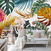 ورق حائط عصري ثلاثي الأبعاد مع نباتات ذهبية ، لوحة جدارية مقاومة للماء مع أوراق وزهور ، لغرفة المعيشة وغرفة الطعام