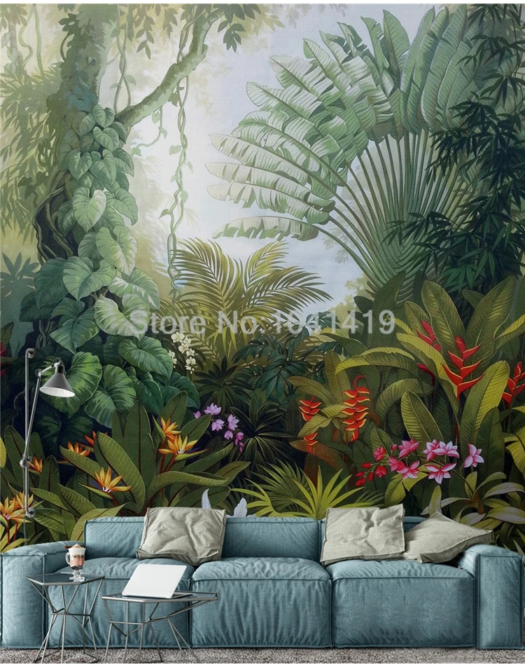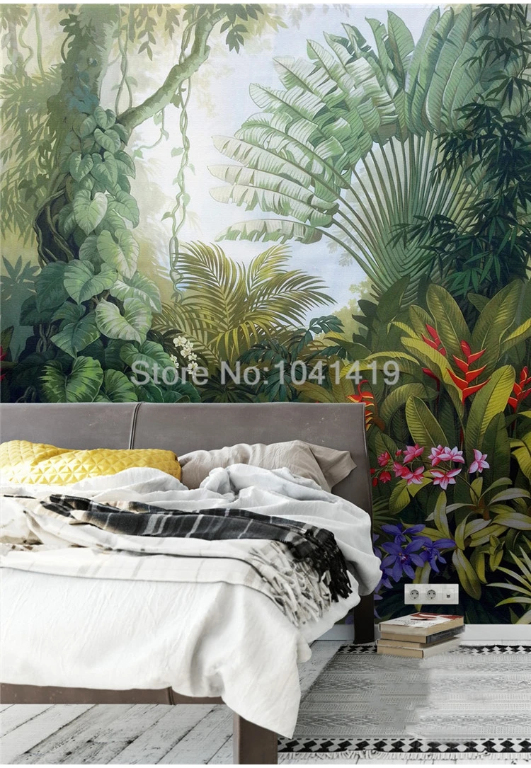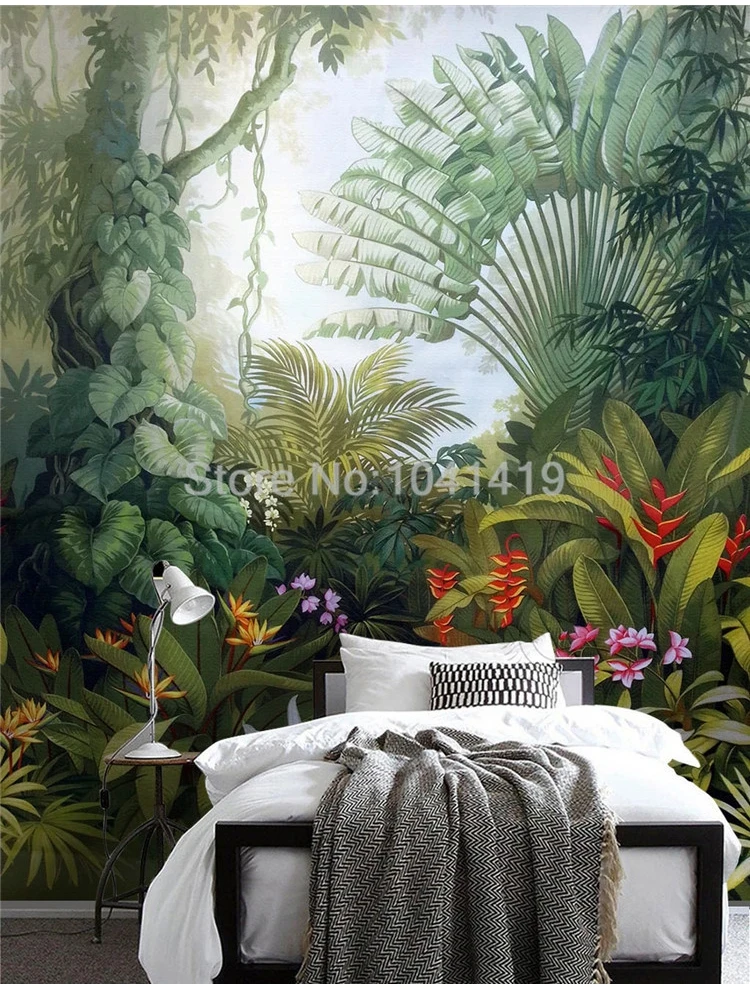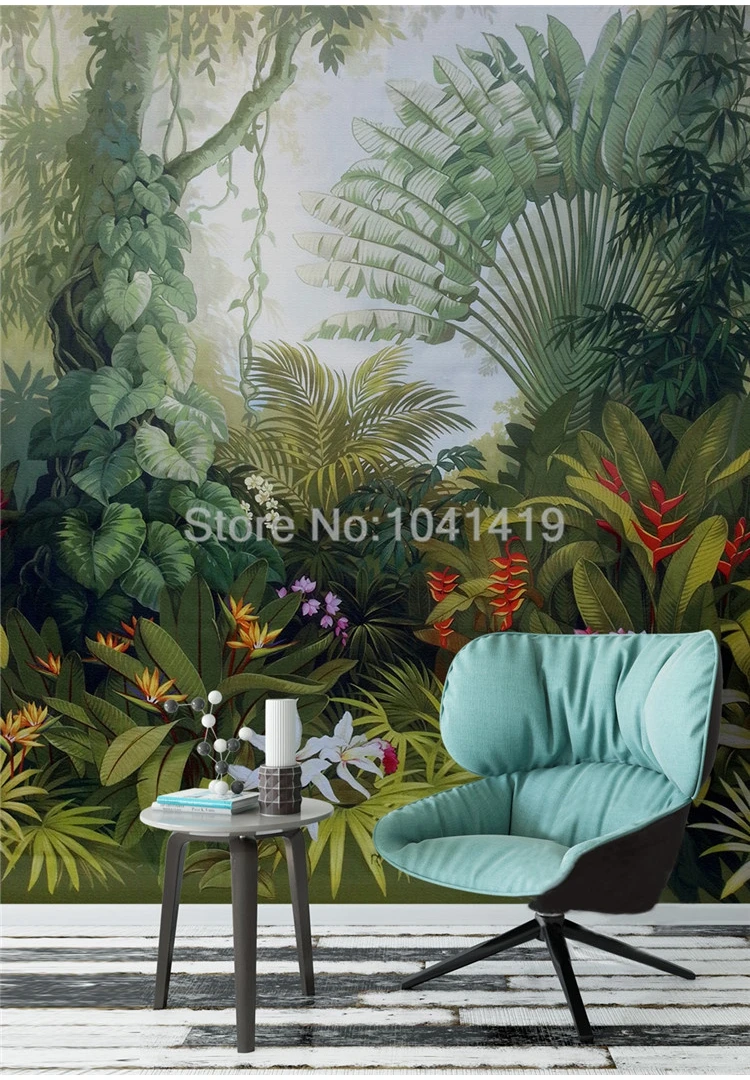 ورق حائط مخصص على الطراز الأوروبي ، ورق حائط ريترو مع نبات غابة استوائية ، لوحة جدارية مع صور ، لغرفة المعيشة