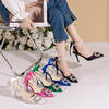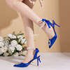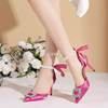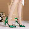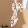 أحذية حريمي بتصميم خريفي 2023 من الحرير مرصعة بالكريستال ذات أسلوب غريب وكعب عالي وطرف مدبب أحذية مريحة لحفلات الزفاف والعروس