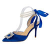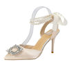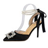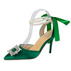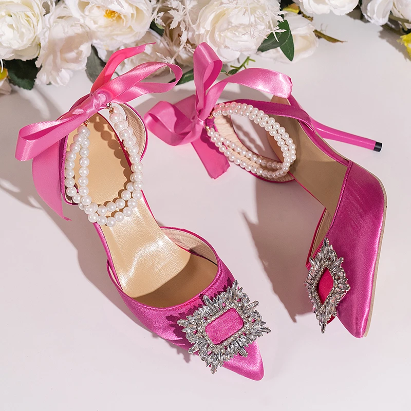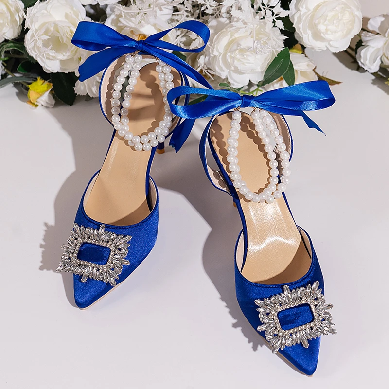 أحذية حريمي بتصميم خريفي 2023 من الحرير مرصعة بالكريستال ذات أسلوب غريب وكعب عالي وطرف مدبب أحذية مريحة لحفلات الزفاف والعروس