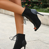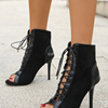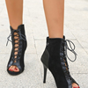 أحذية نسائية صيفية موديل 2023 صنادل سوداء مفرغة ذات كعوب شبكية أحذية نسائية برباط علوي أحذية بكعب للسيدات 35-43
