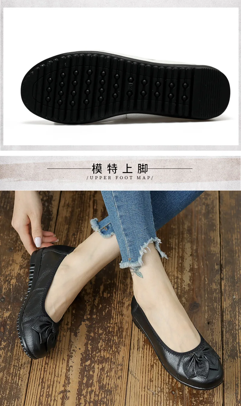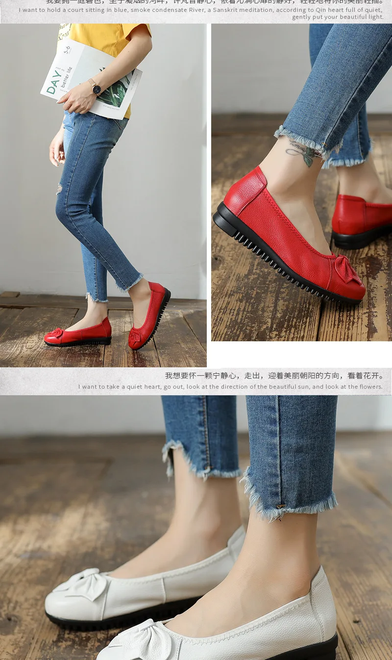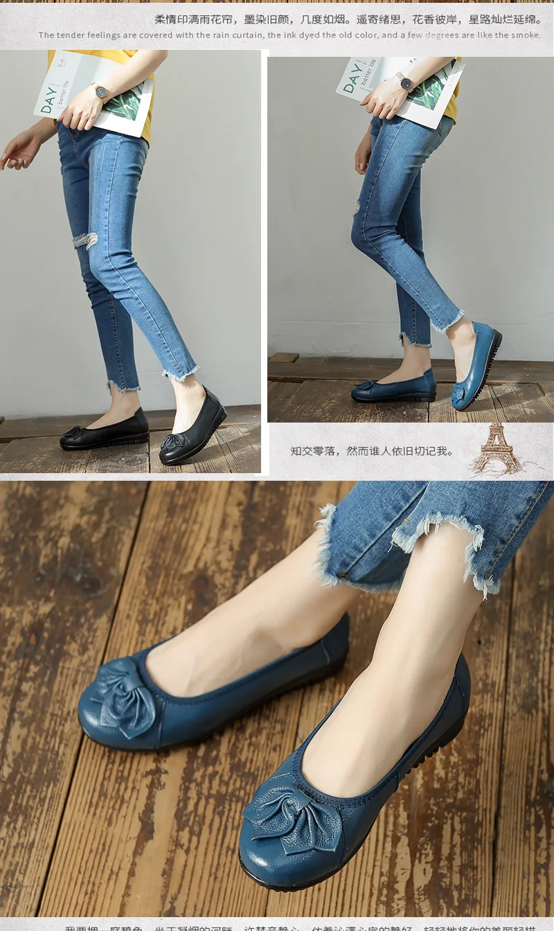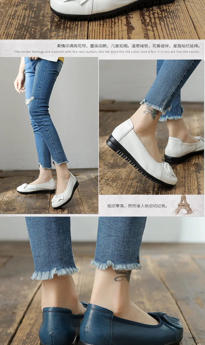 أحذية نسائية للربيع والخريف موضة 2023 كلاسيكية عرقية مصنوعة من الجلد الطبيعي حذاء مسطح سهل الارتداء بمقدمة مستديرة حذاء نسائي غير رسمي مقاس 42