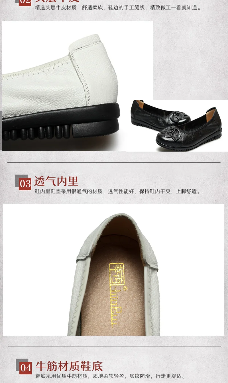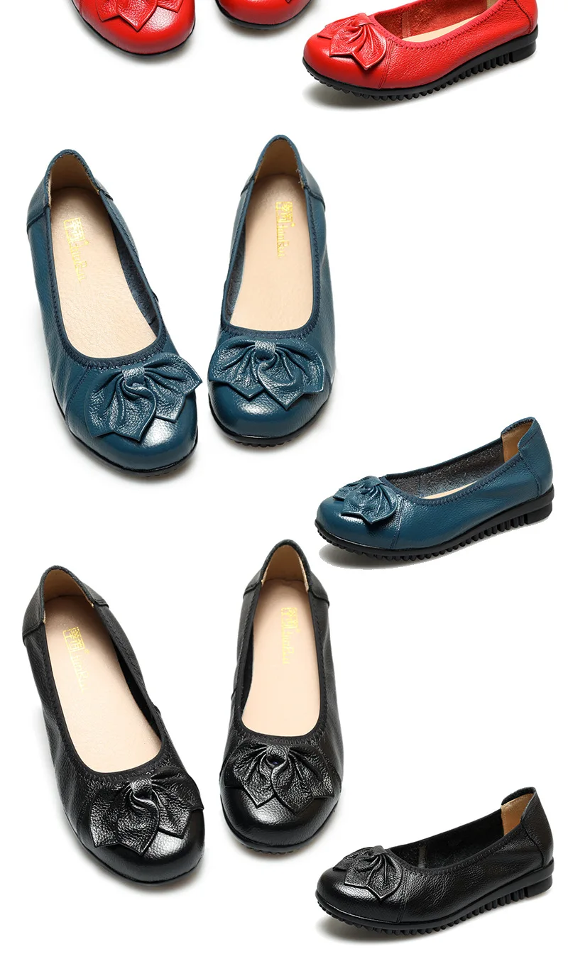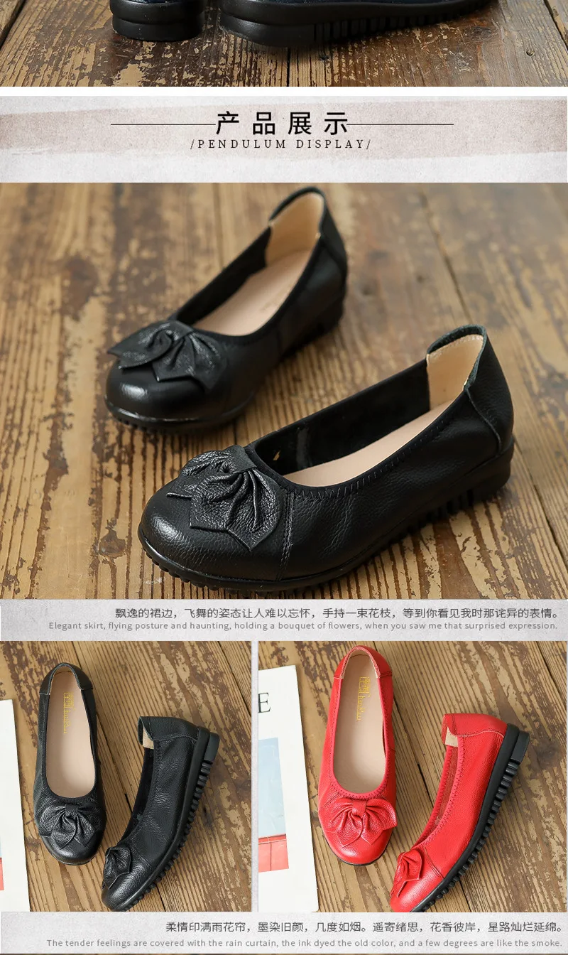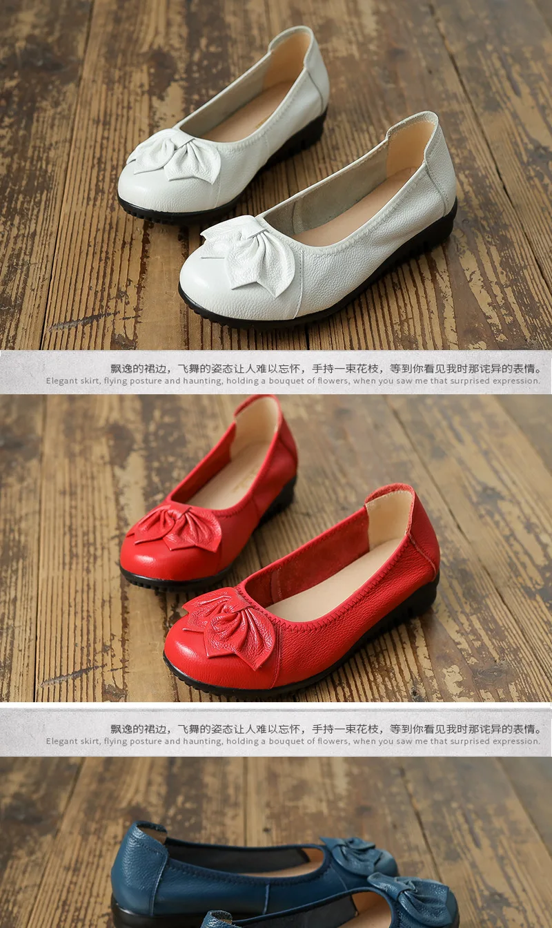 أحذية نسائية للربيع والخريف موضة 2023 كلاسيكية عرقية مصنوعة من الجلد الطبيعي حذاء مسطح سهل الارتداء بمقدمة مستديرة حذاء نسائي غير رسمي مقاس 42