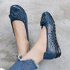 أحذية نسائية للربيع والخريف موضة 2023 كلاسيكية عرقية مصنوعة من الجلد الطبيعي حذاء مسطح سهل الارتداء بمقدمة مستديرة حذاء نسائي غير رسمي مقاس 42