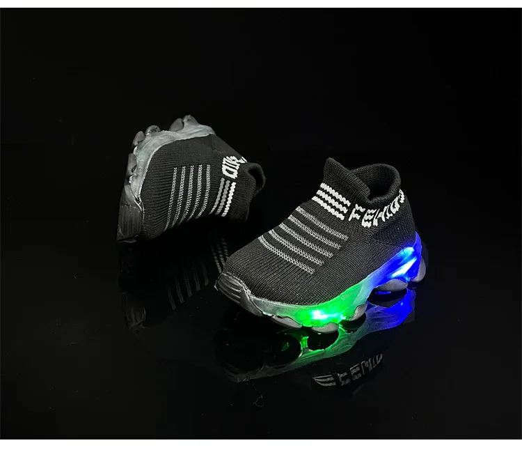 أحذية Led للأطفال أحذية رياضية مضيئة للأولاد والبنات أحذية متوهجة للأطفال أحذية رياضية باللون الأخضر والأسود أحذية رياضية للأولاد مع نعل مضيء