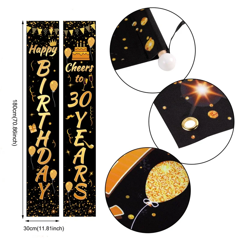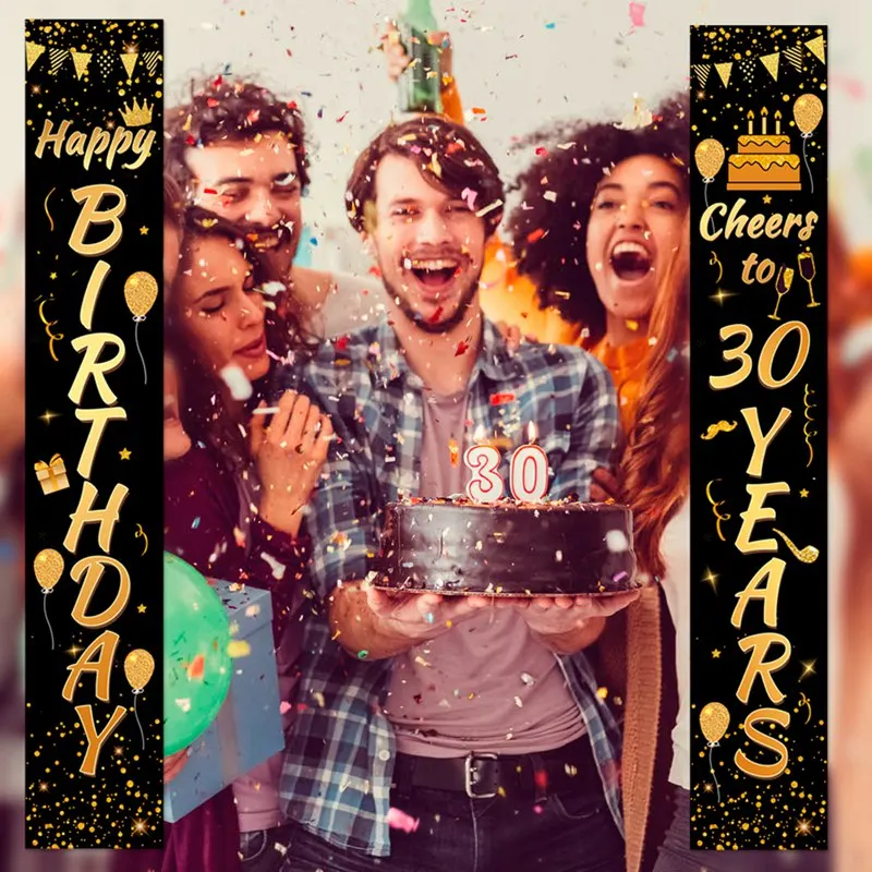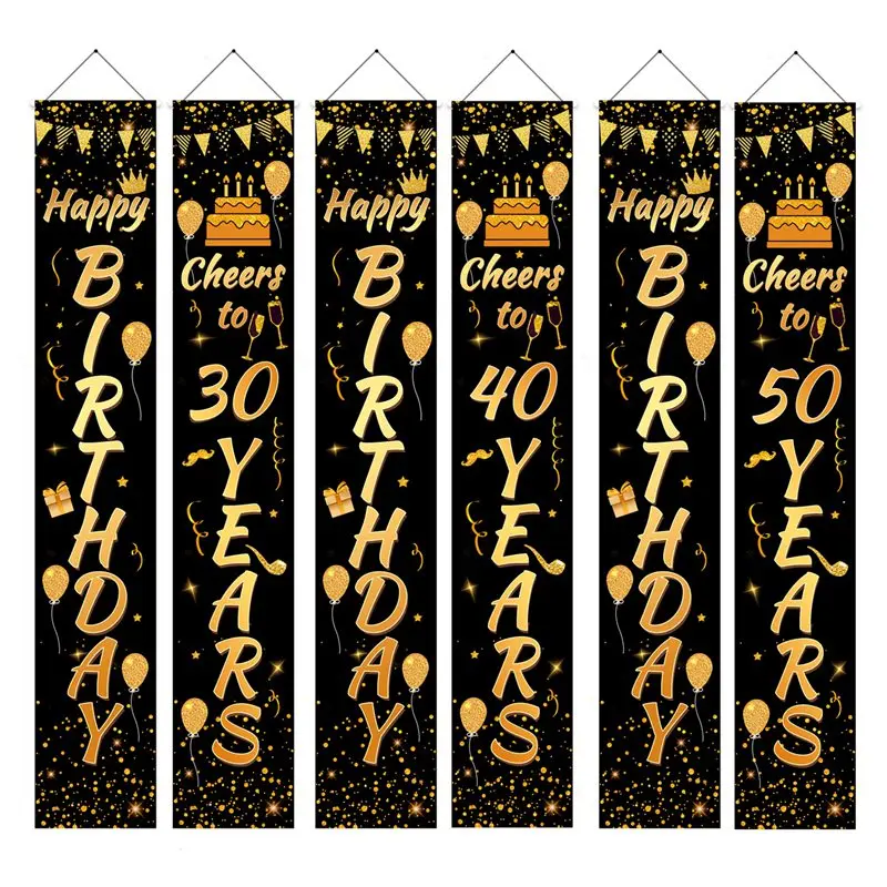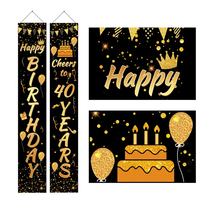 أسود الذهب عيد ميلاد راية سعيد 30th 40th 50th عيد ميلاد حزب ديكور الكبار 30 40 50 سنة عيد إمدادات حزب الذكرى