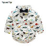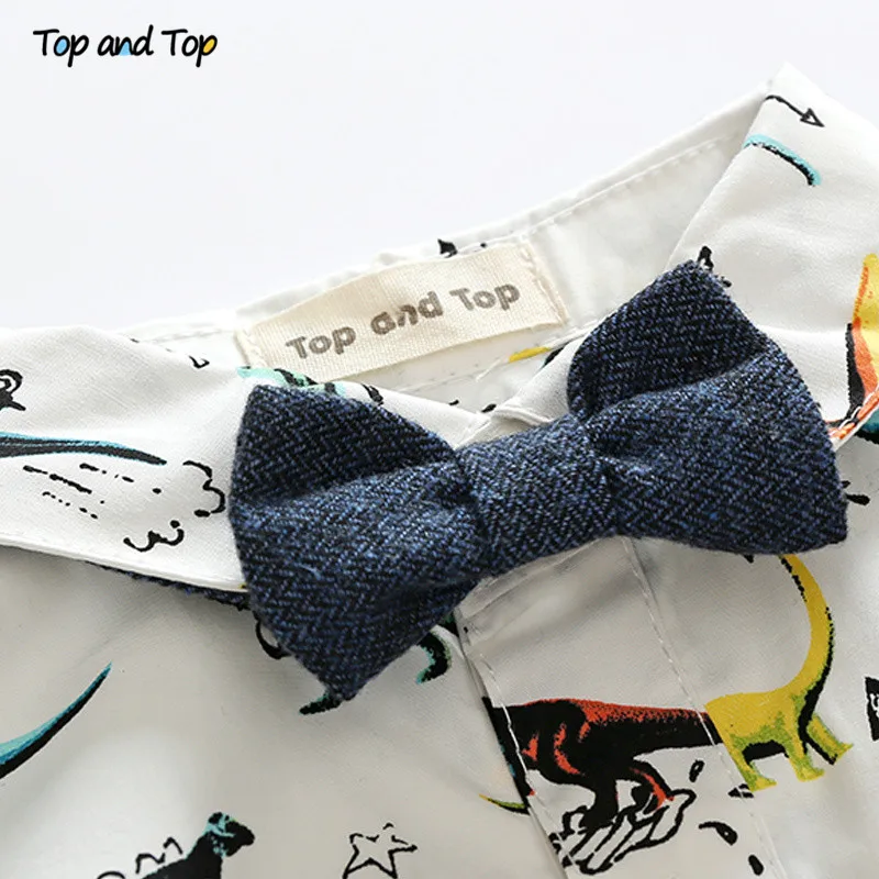 أعلى و أعلى الخريف الطفل الصبي مجموعة ملابس ربطة القوس فيونكة طويلة الأكمام الكرتون تي شيرت + حمالة السراويل 2 قطعة/المجموعة الرسمي الطفل الملابس