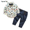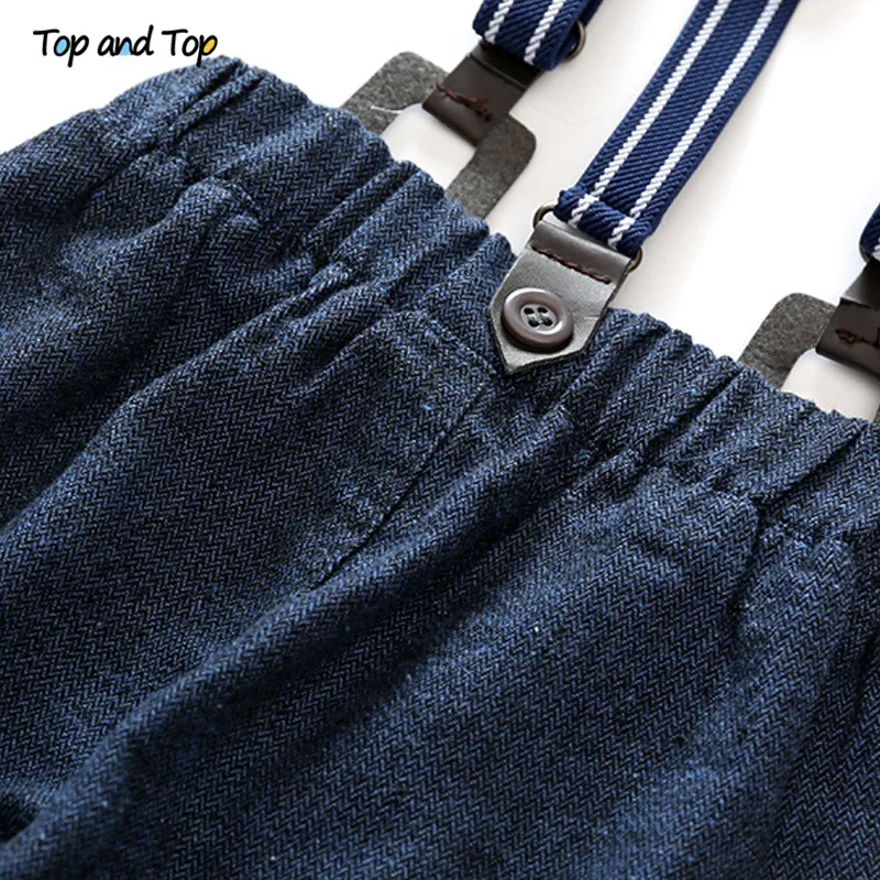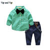 أعلى و أعلى الخريف الطفل الصبي مجموعة ملابس ربطة القوس فيونكة طويلة الأكمام الكرتون تي شيرت + حمالة السراويل 2 قطعة/المجموعة الرسمي الطفل الملابس