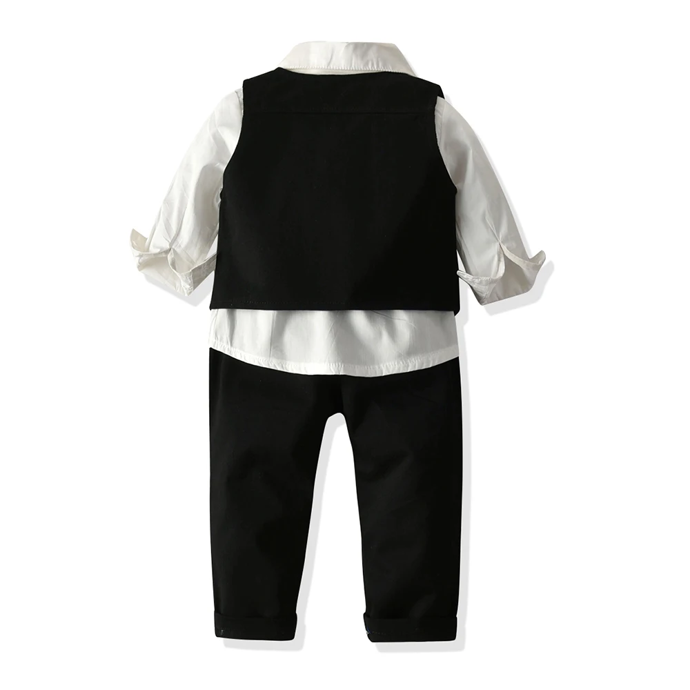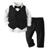 أفضل وأعلى الخريف الشتاء موضة ليتل بنين جنتلمان ملابس قطنية البدلة سترة السترة ربطة القوس فيونكة كم طويل بلايز بنطلون الزي