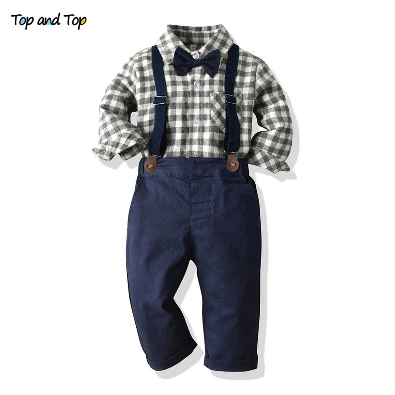 أفضل وأعلى الخريف الشتاء موضة ليتل بنين جنتلمان ملابس قطنية البدلة سترة السترة ربطة القوس فيونكة كم طويل بلايز بنطلون الزي