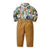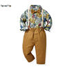 أفضل وأعلى طفل أطفال بنين ملابس كاجوال مجموعات طويلة الأكمام المطبوعة ربطة قميص بلايز + الحمالات السراويل جنتلمان 2 قطعة الدعاوى