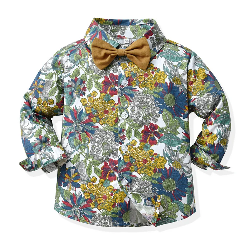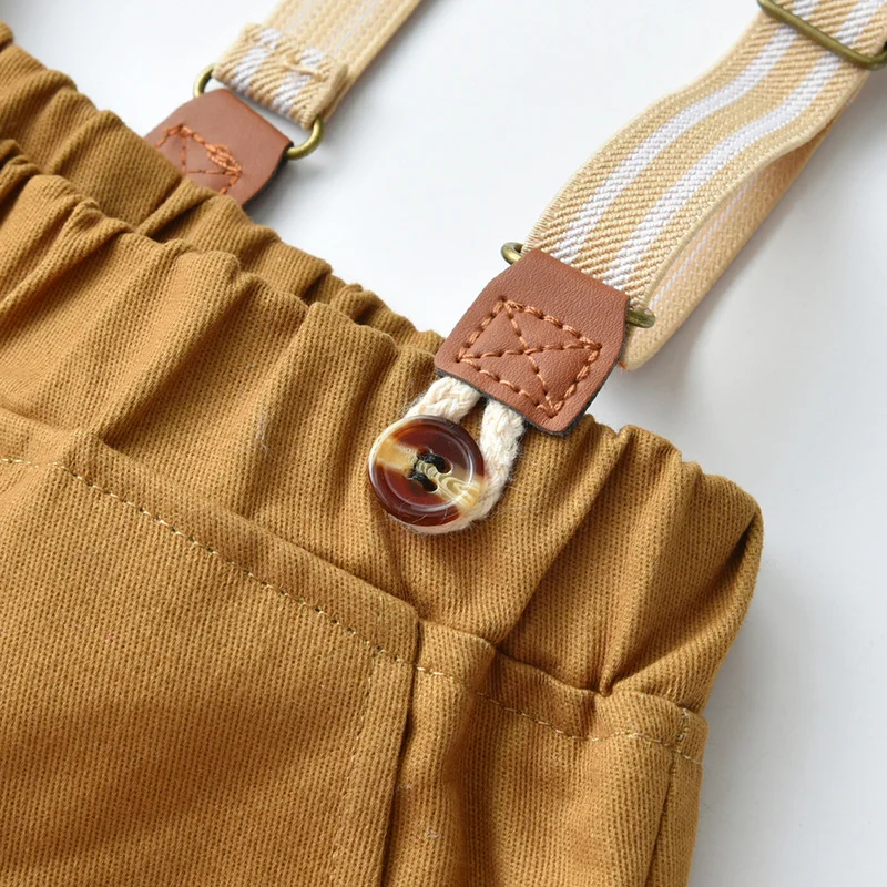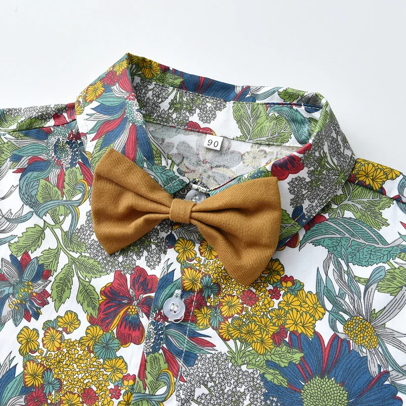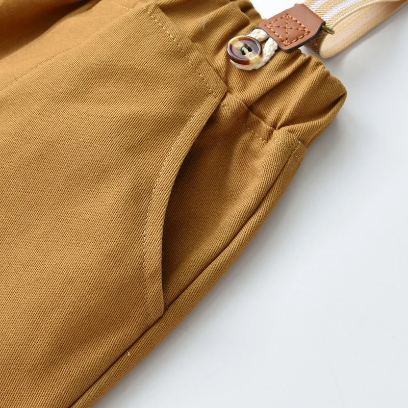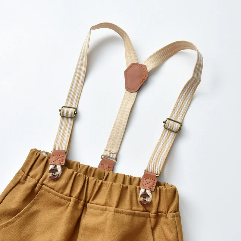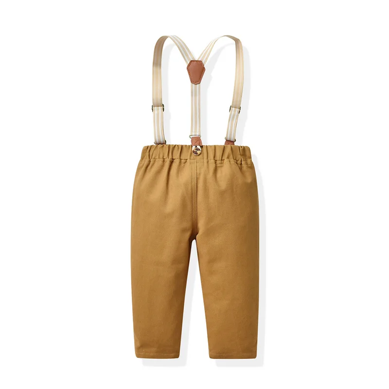 أفضل وأعلى طفل أطفال بنين ملابس كاجوال مجموعات طويلة الأكمام المطبوعة ربطة قميص بلايز + الحمالات السراويل جنتلمان 2 قطعة الدعاوى
