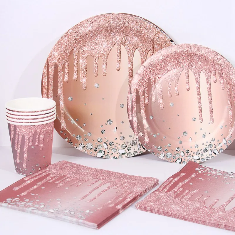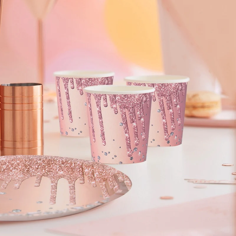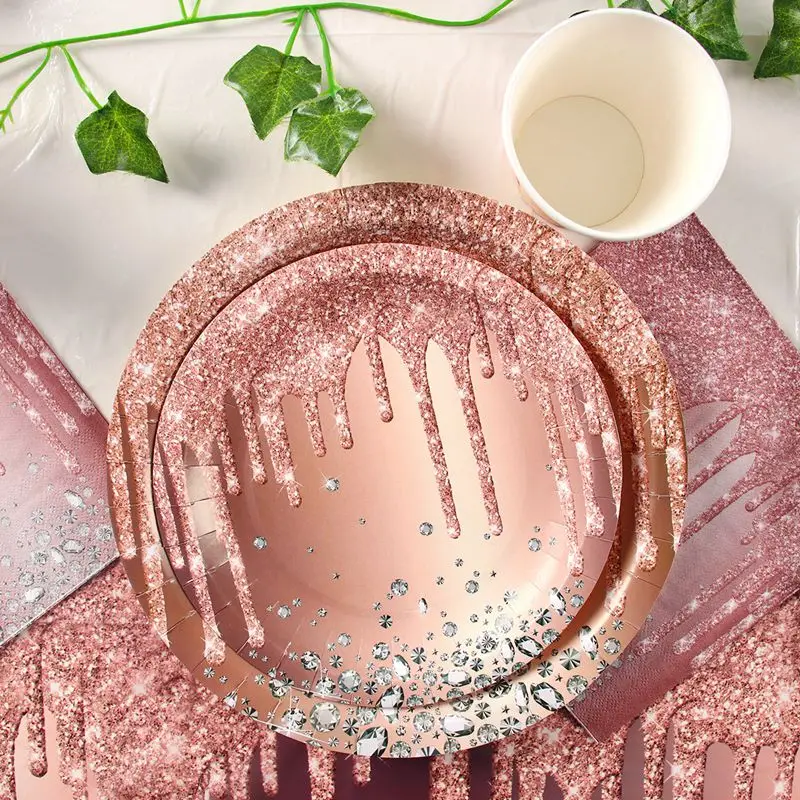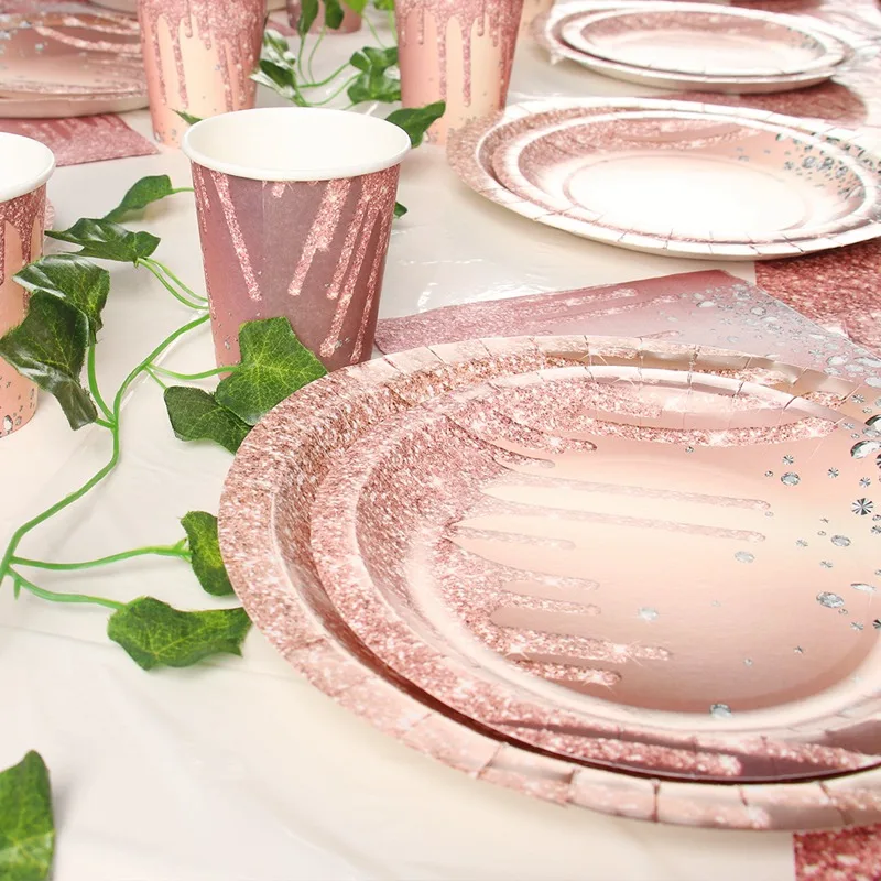 ارتفع الذهب لوازم الطاولة/المائدة قابل للتصرف مجموعة الصَّفيحَةُ الوَرَقِيَّة حزب كوب عيد ديكور الاطفال الكبار الزفاف عيد ميلاد لوازم استحمام الطفل فتاة