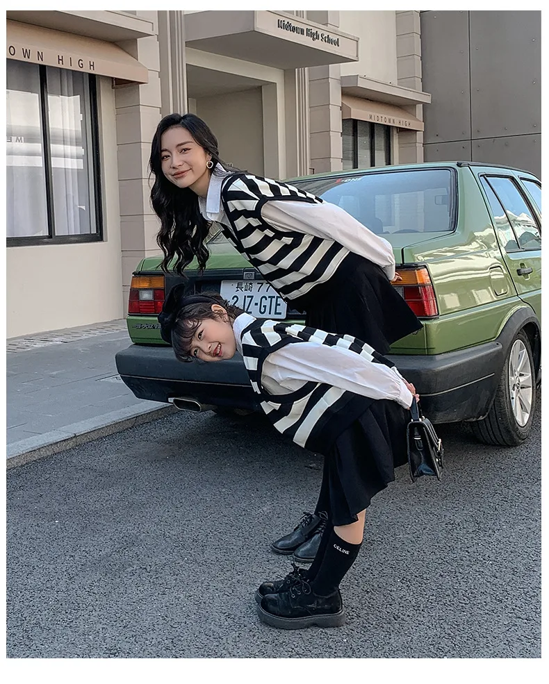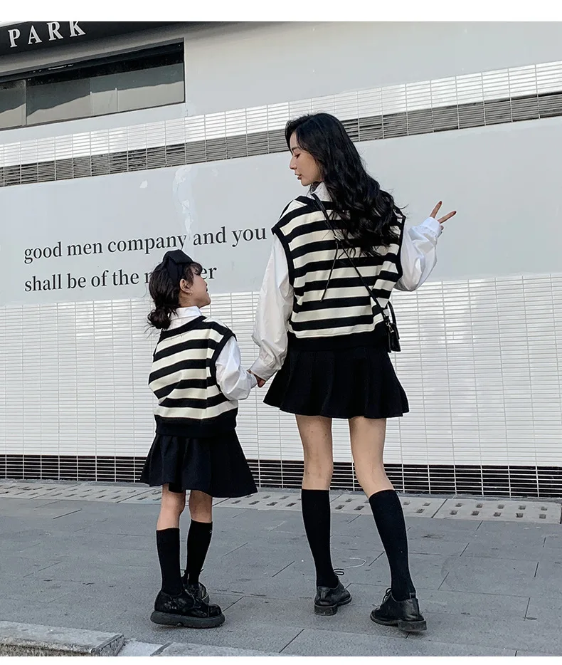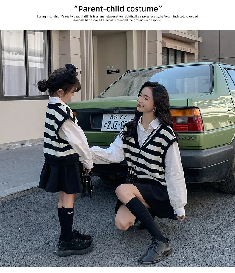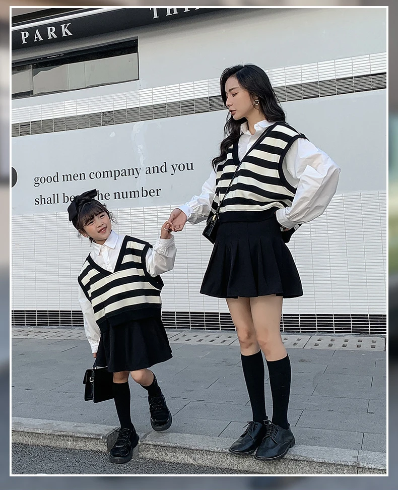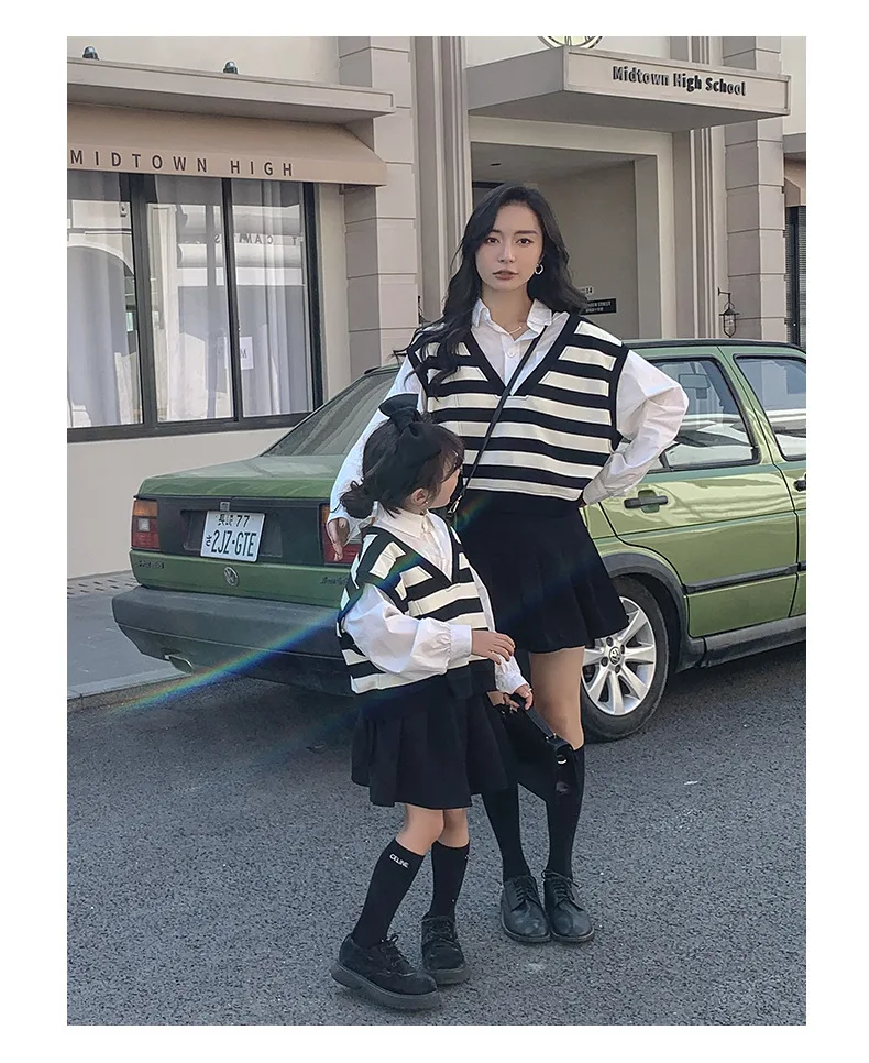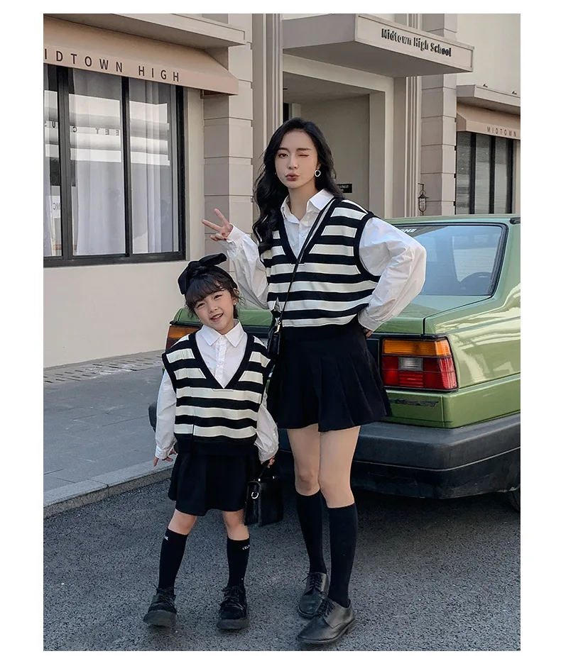 الأسرة مطابقة الملابس ربيع الخريف الأم ابنة مخطط سترات القطن الخامس الرقبة طويلة الأكمام بلوزات فضفاضة الأم الطفل ملابس خارجية معطف