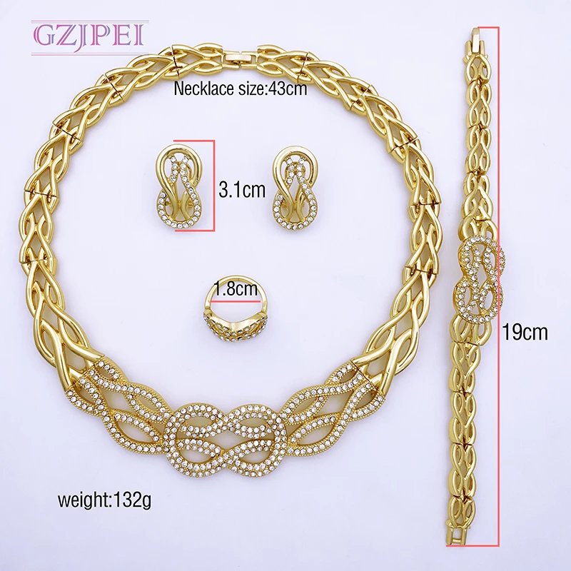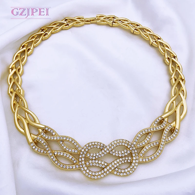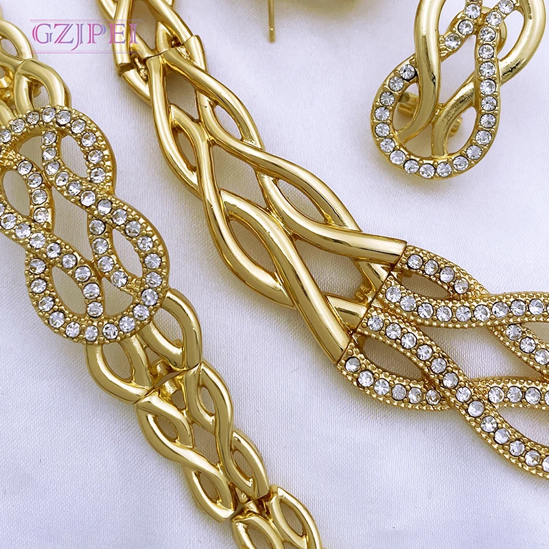 الايطالية مطلية بالذهب والمجوهرات مجموعة النساء قلادة مجموعات مجوهرات أنيقة بسيطة لحفل الزفاف شحن مجاني بالجملة