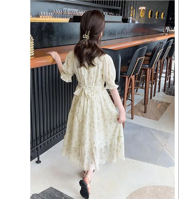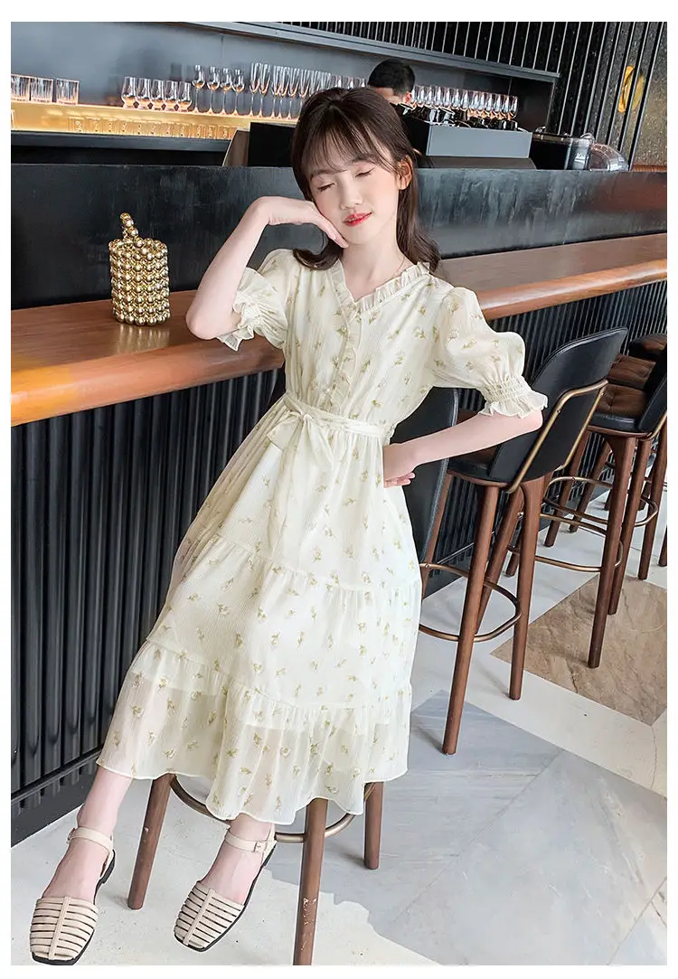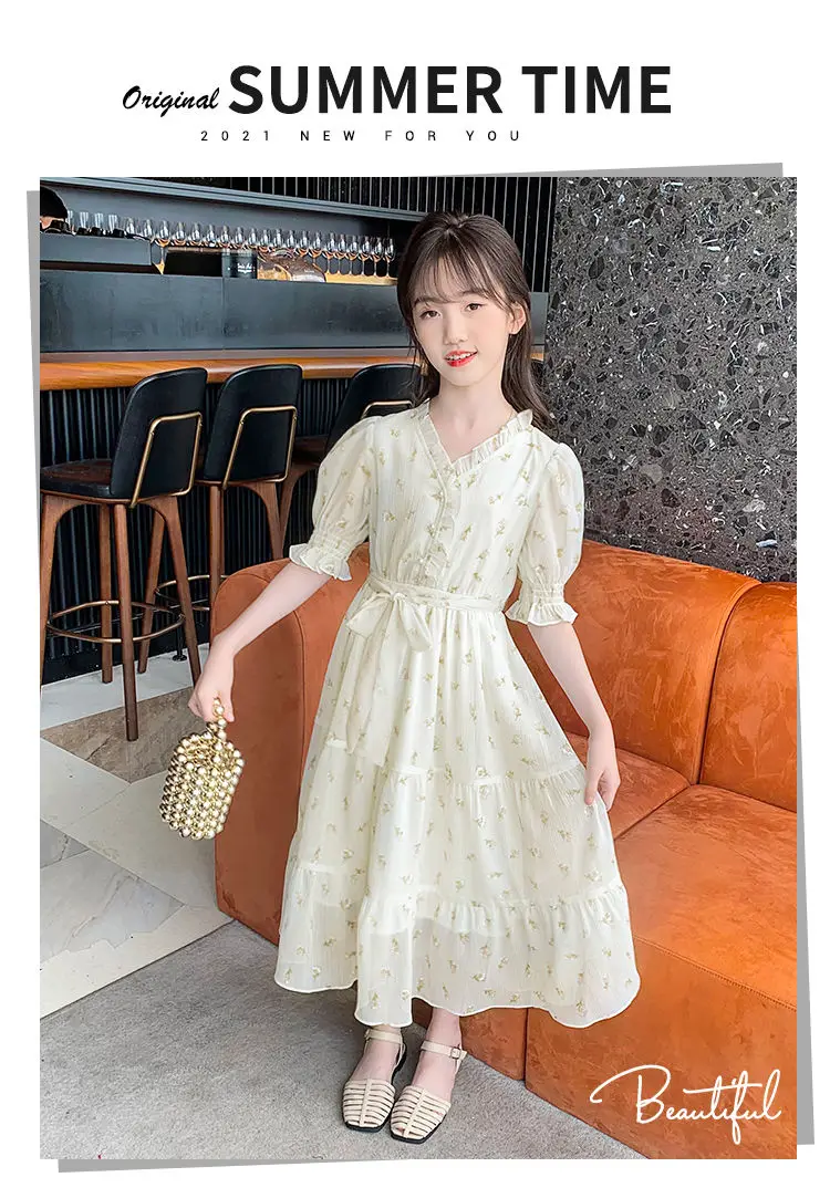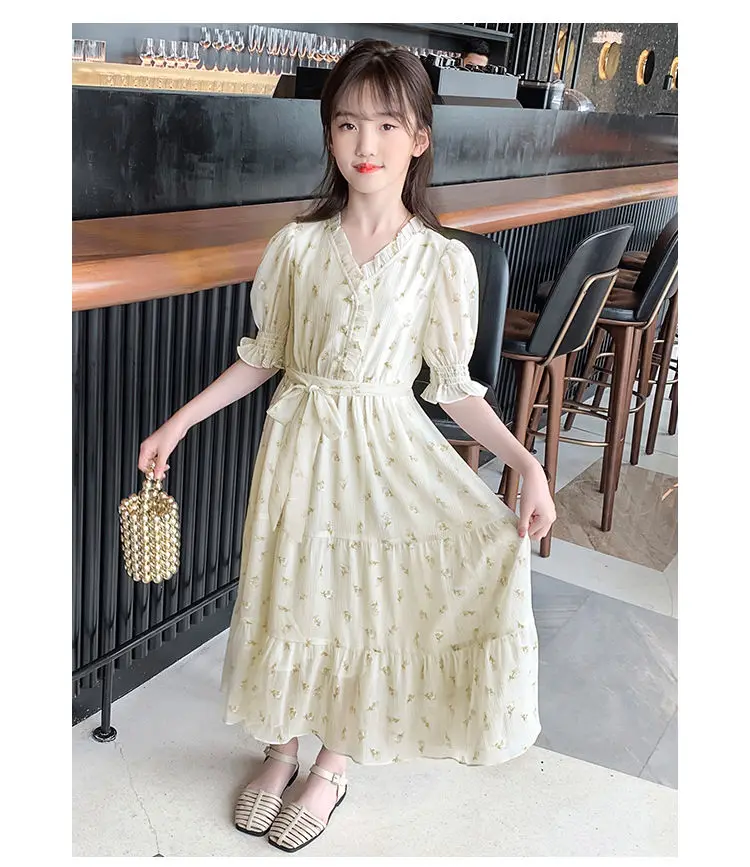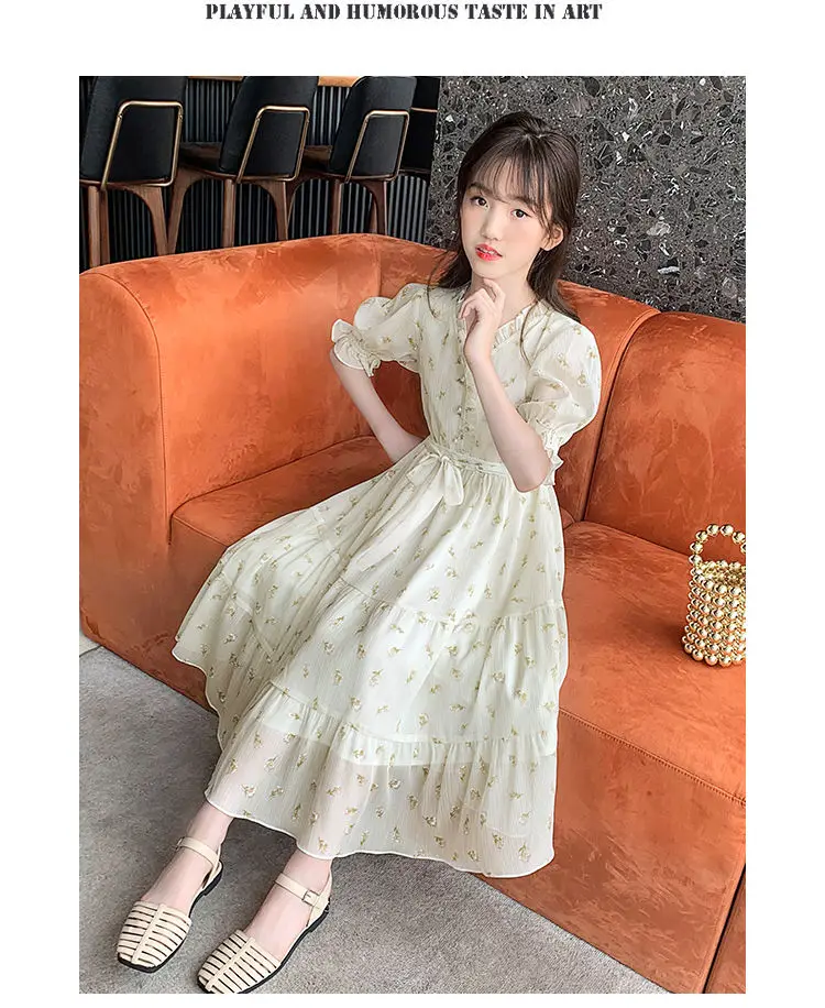 البوهيمي فستان للفتيات كبيرة نفخة كم زهرة طباعة الأطفال الكاحل طول الاطفال حزب ماكسي فساتين الصيف المراهقين الملابس 15 16
