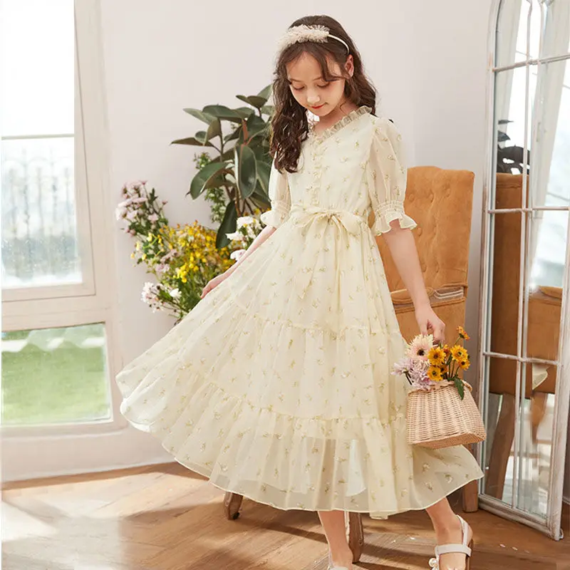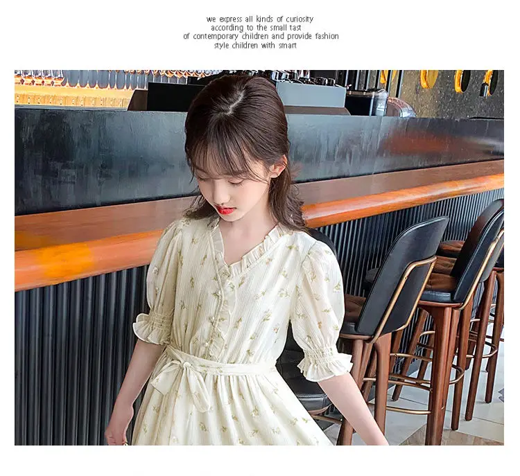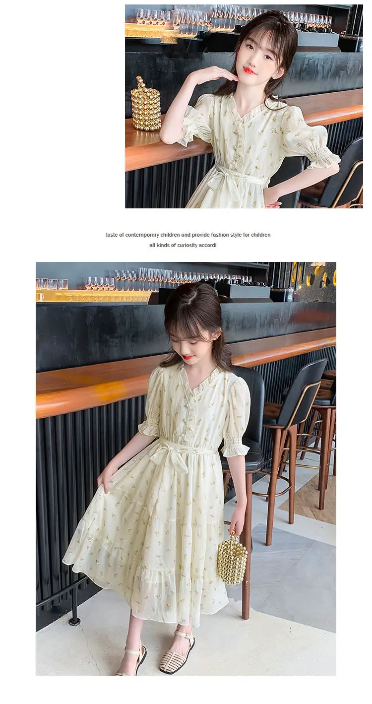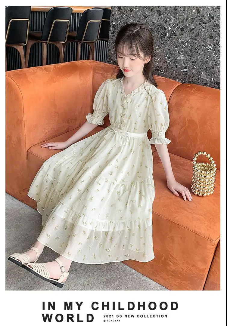 البوهيمي فستان للفتيات كبيرة نفخة كم زهرة طباعة الأطفال الكاحل طول الاطفال حزب ماكسي فساتين الصيف المراهقين الملابس 15 16
