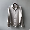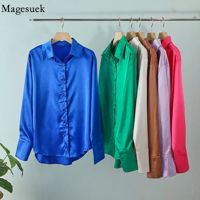 الحرير الكورية مكتب السيدات أنيقة قميص بلوزة المرأة زر على الموضة حتى الساتان قميص Vintage الأبيض كم طويل قمصان بلايز 11355
