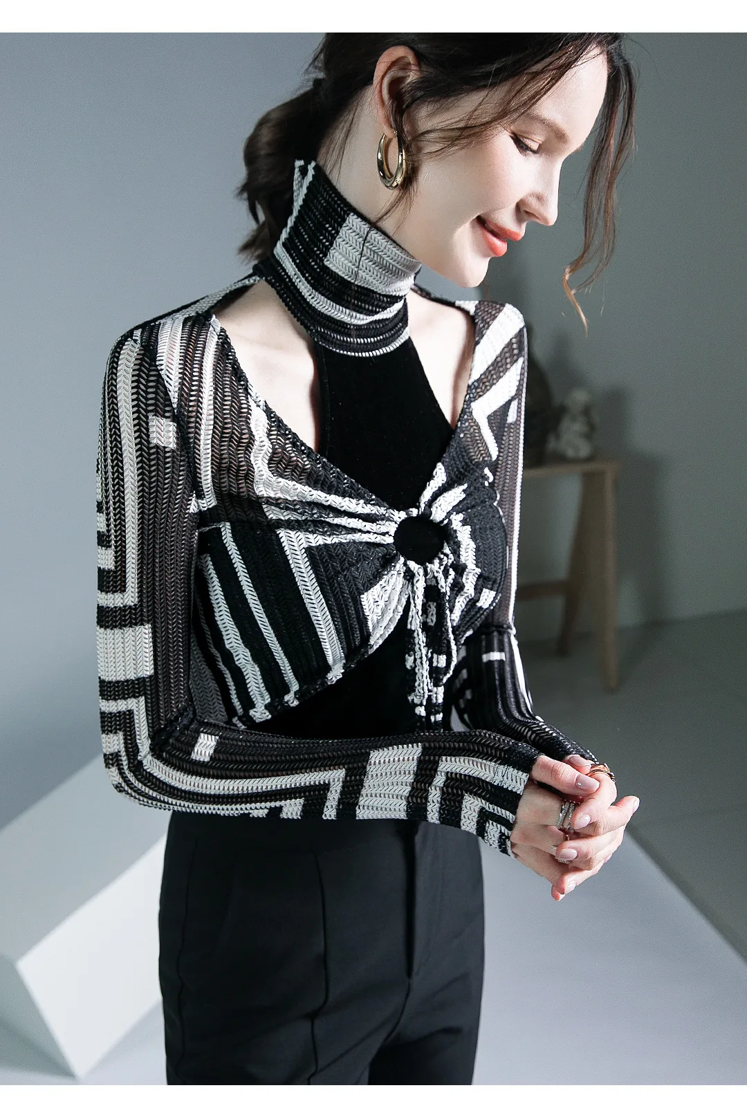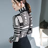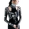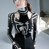 الخريف الربيع الإناث الياقة المدورة كامل الأكمام خليط تي شيرت الفتيات الجوف خارج سليم القمم تيز تي شيرت امرأة