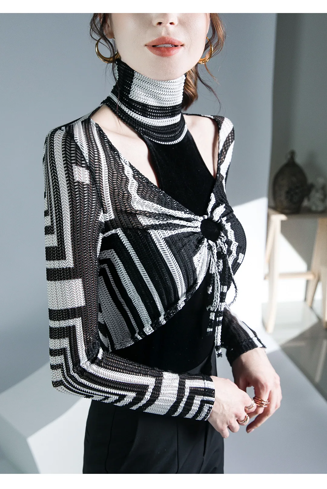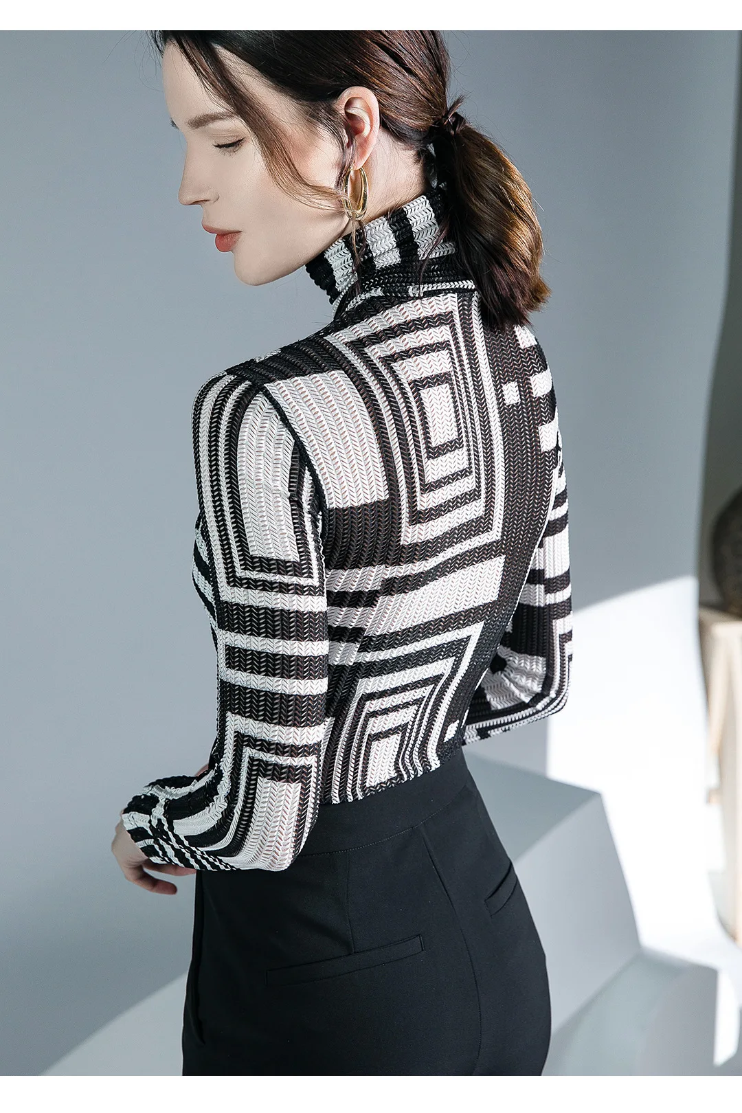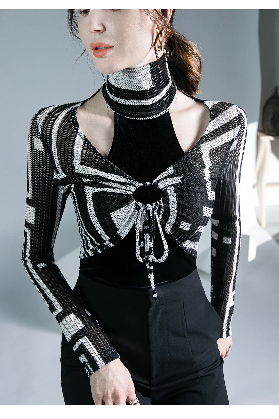 الخريف الربيع الإناث الياقة المدورة كامل الأكمام خليط تي شيرت الفتيات الجوف خارج سليم القمم تيز تي شيرت امرأة