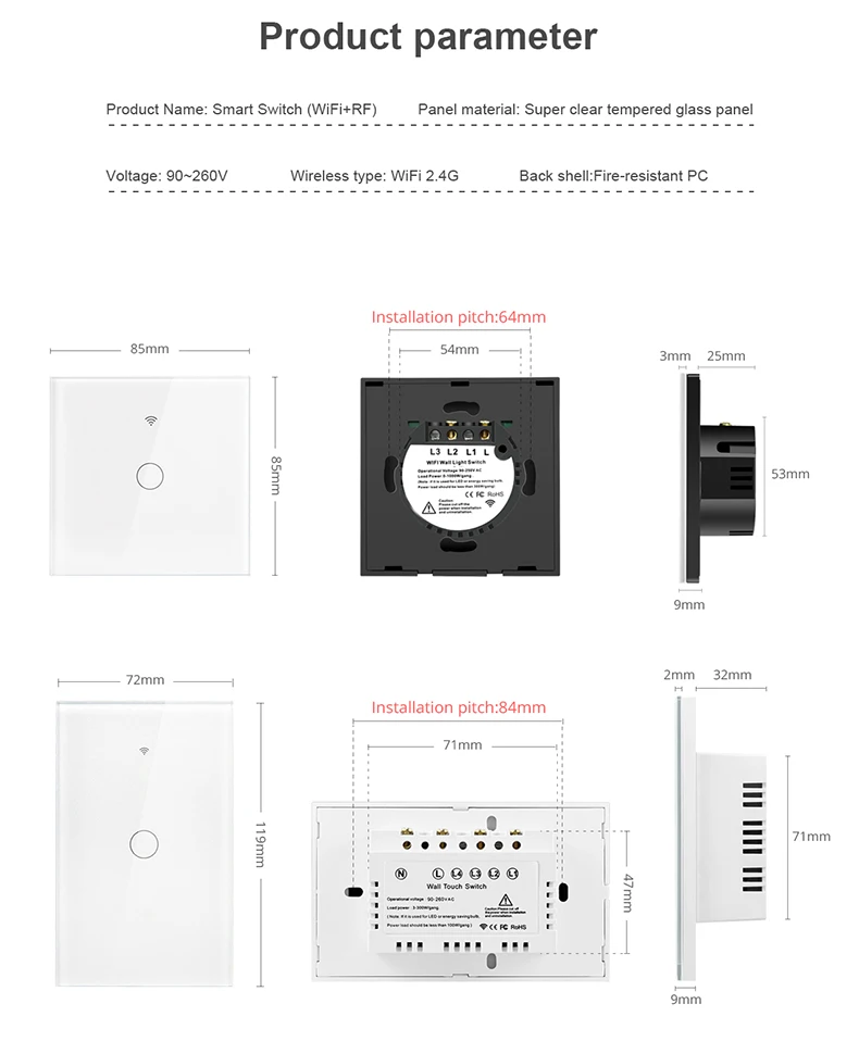 النوع: 1/2/3 عصابة تعمل باللمس واي فاي التبديل
