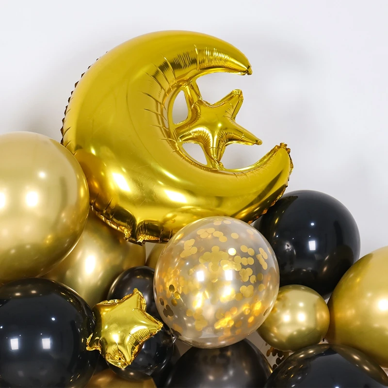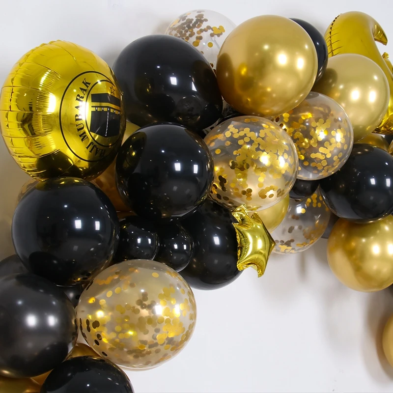 الذهب الأسود عيد مبارك بالون جارلاند قوس عدة راية رمضان الديكور للمنزل حفلة عيد ميلاد الديكور الاطفال اللاتكس بالون