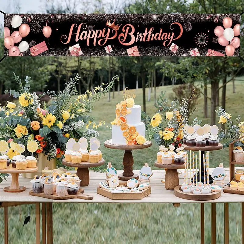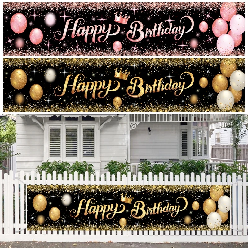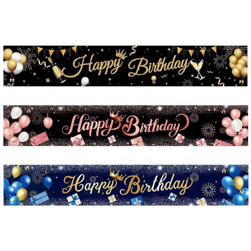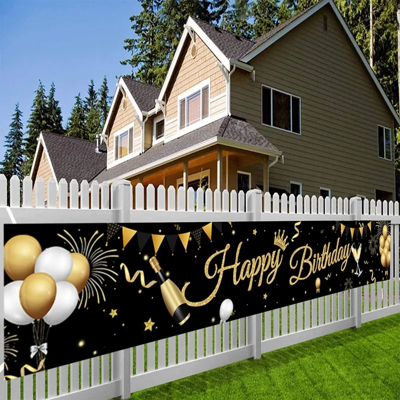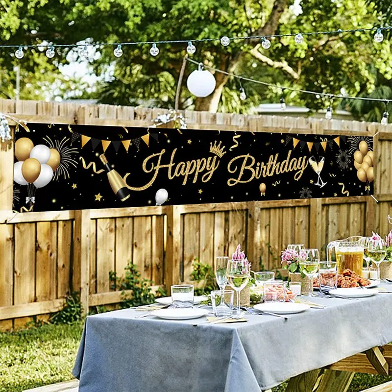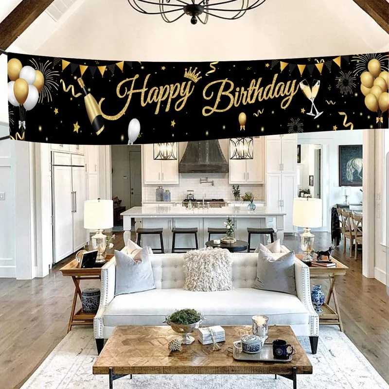 الذهب الأسود عيد ميلاد سعيد راية معلقة أعلام 30 40 50th حفلة عيد ميلاد الديكور خلفية ديكور الرايات جارلاند لافتات