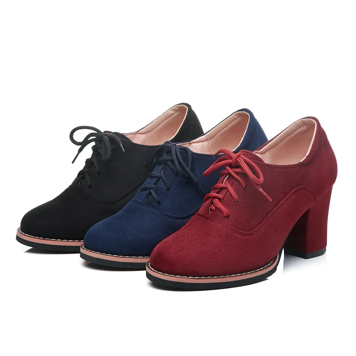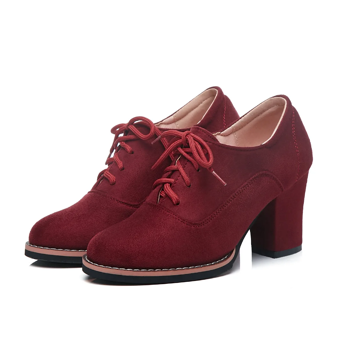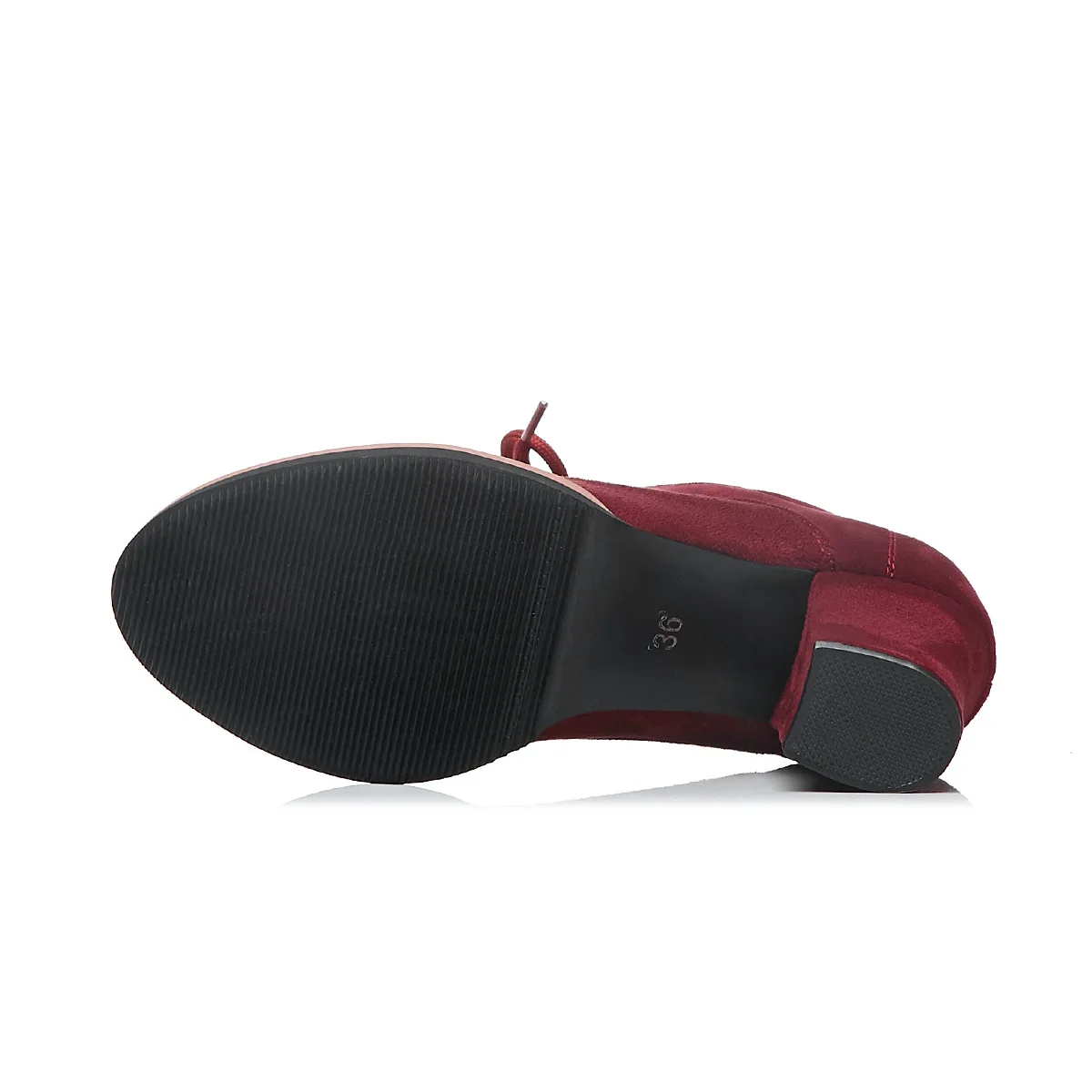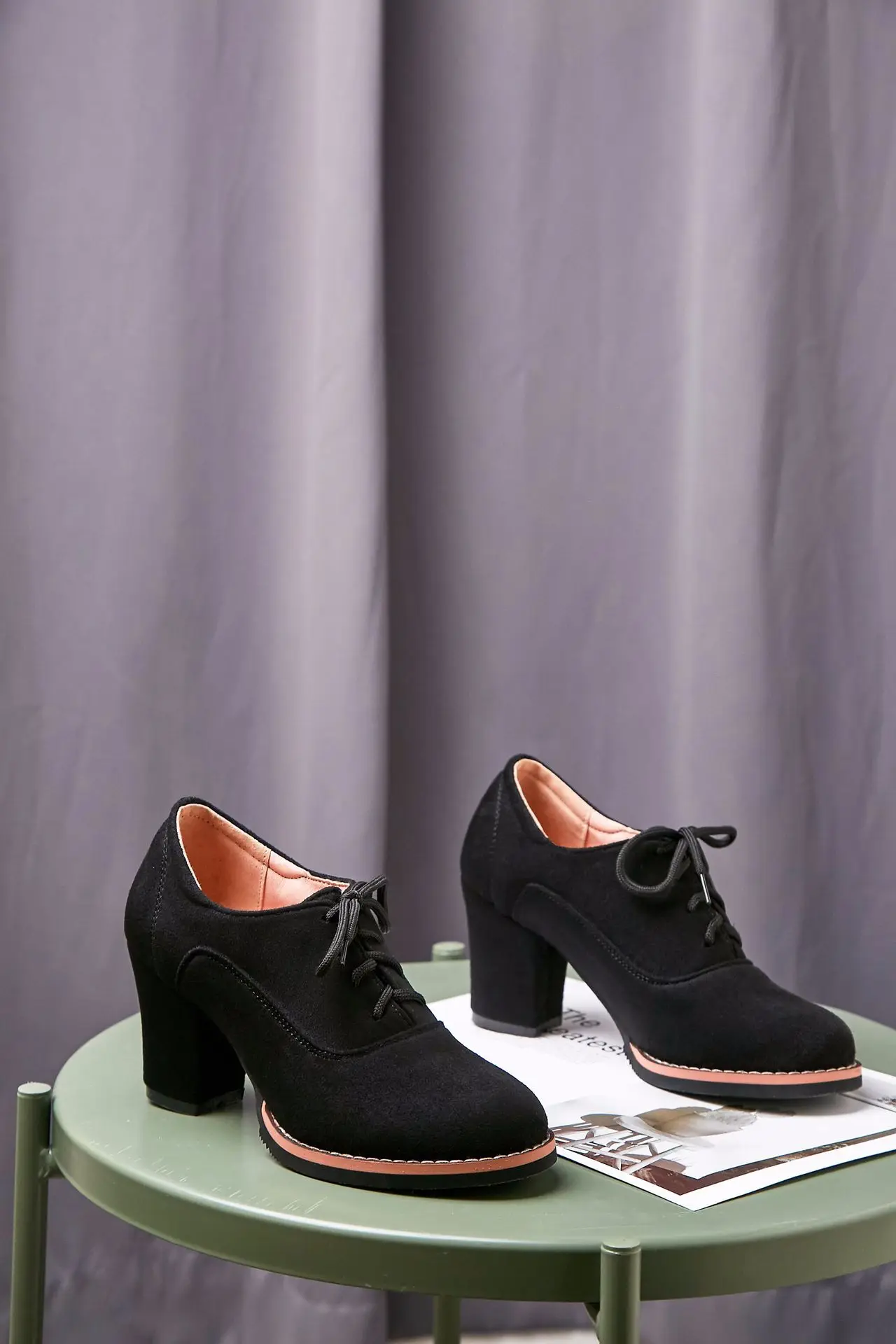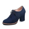 الشتاء النساء أحذية الجلد المدبوغ 7.5 سنتيمتر كعب مربع جولة تو الدانتيل متابعة الشارع نمط الجدة الصلبة الكاحل الخياطة أحذية للنساء جديد أسود
