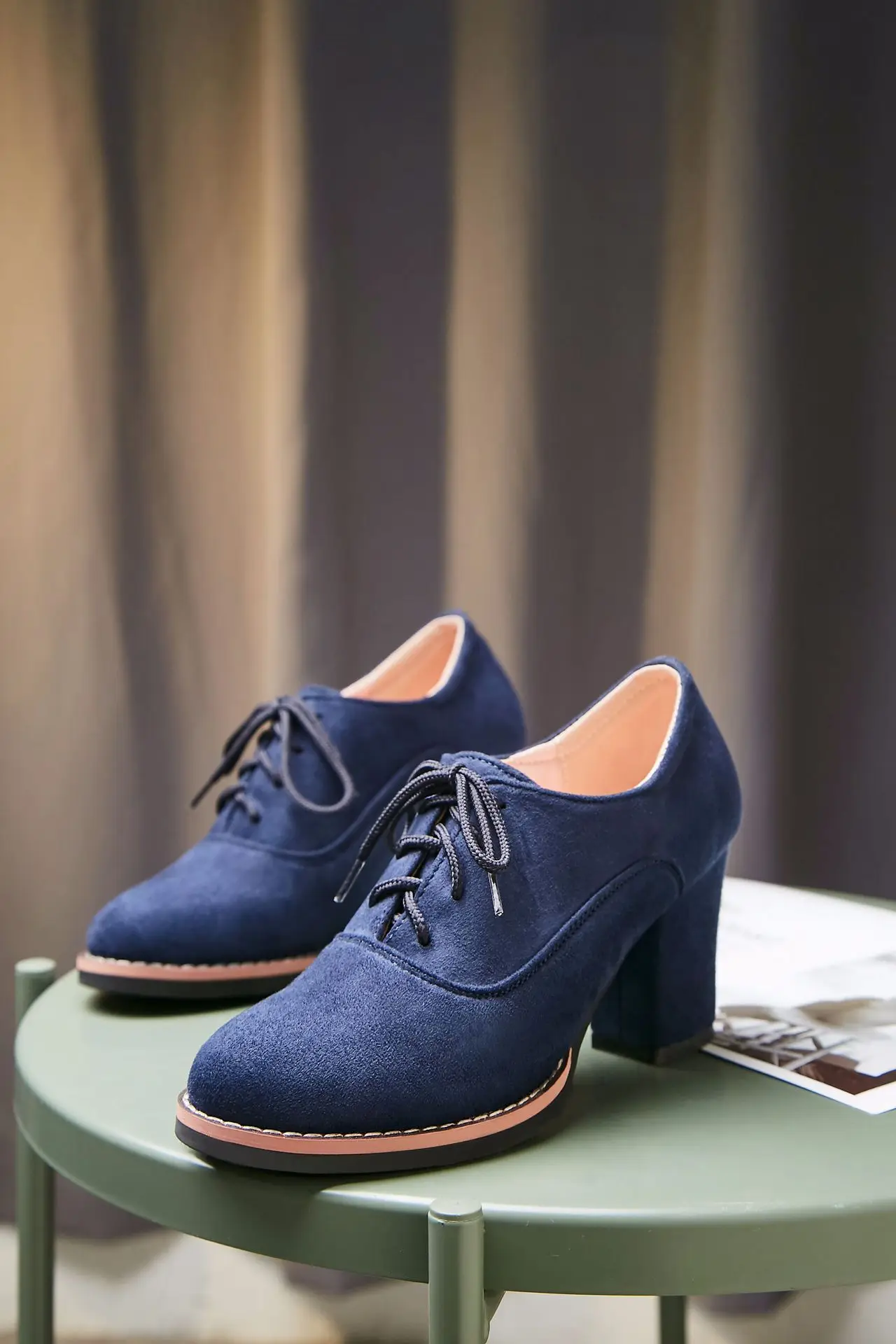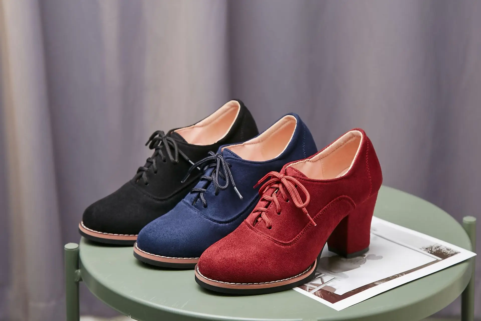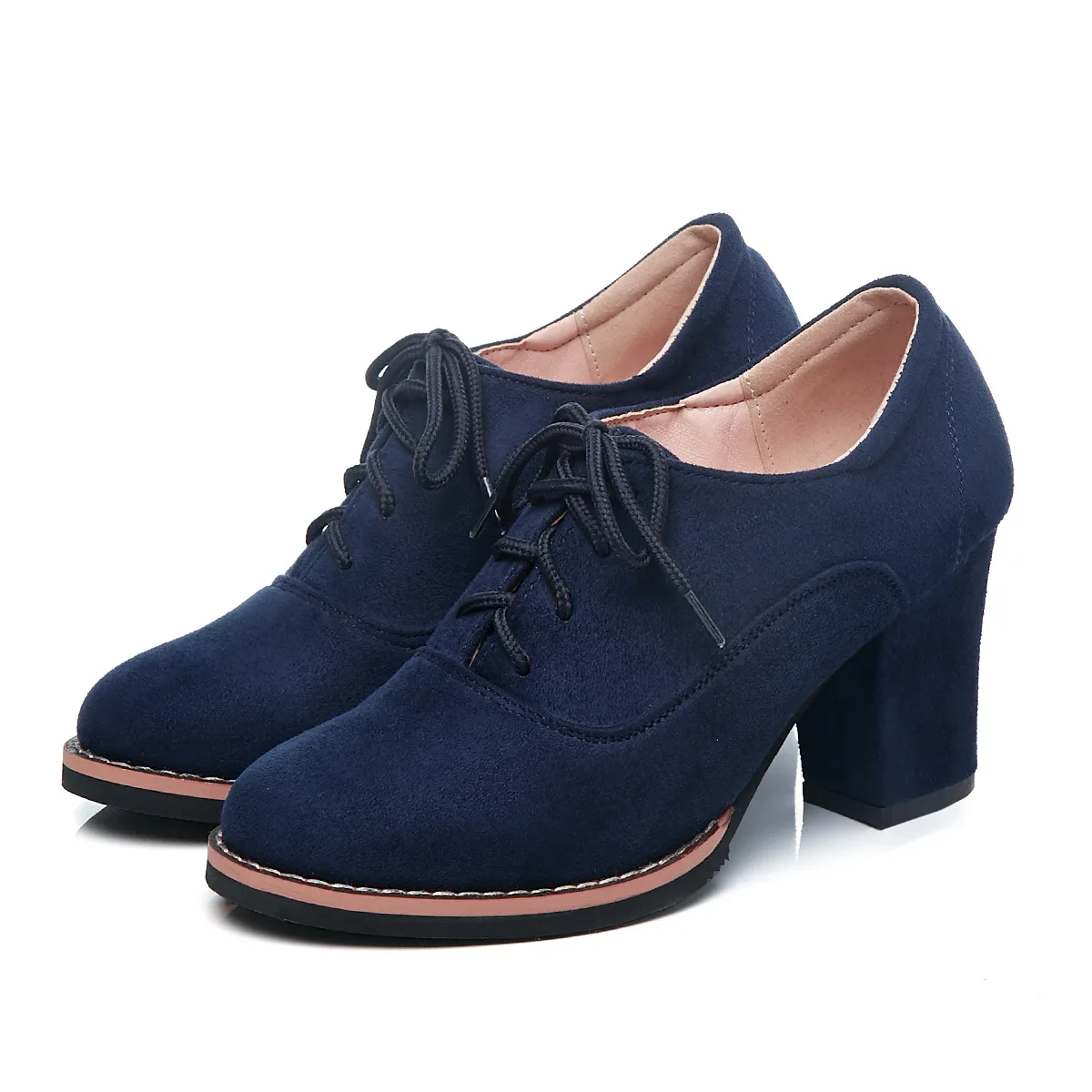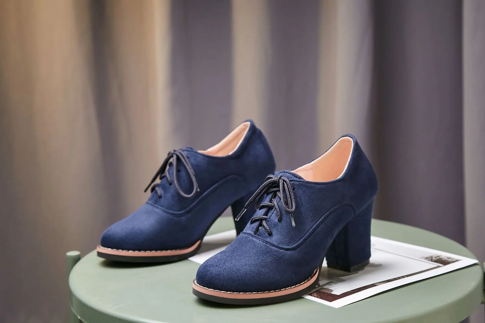 الشتاء النساء أحذية الجلد المدبوغ 7.5 سنتيمتر كعب مربع جولة تو الدانتيل متابعة الشارع نمط الجدة الصلبة الكاحل الخياطة أحذية للنساء جديد أسود