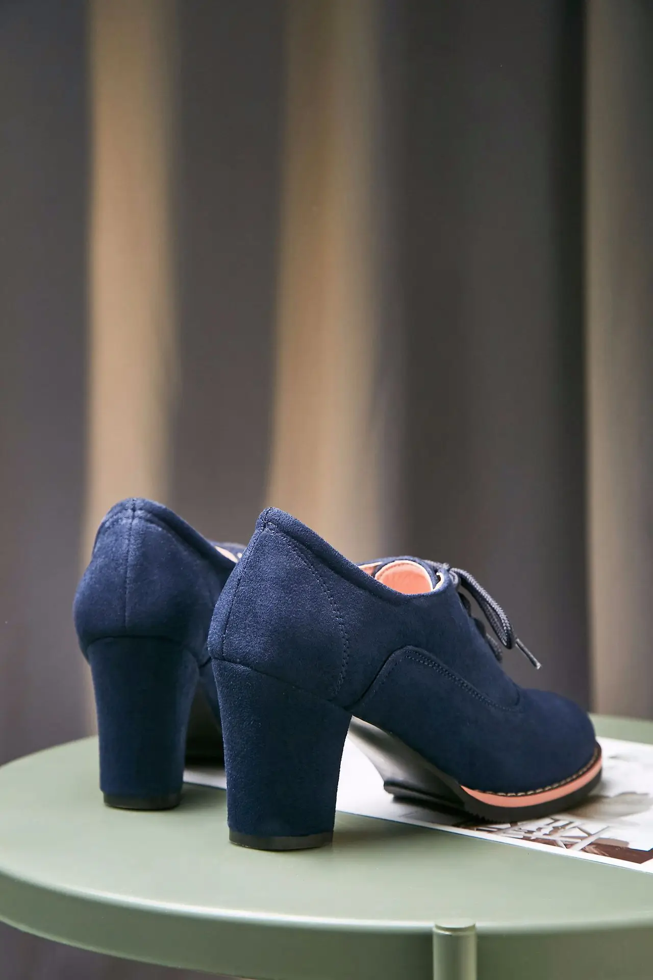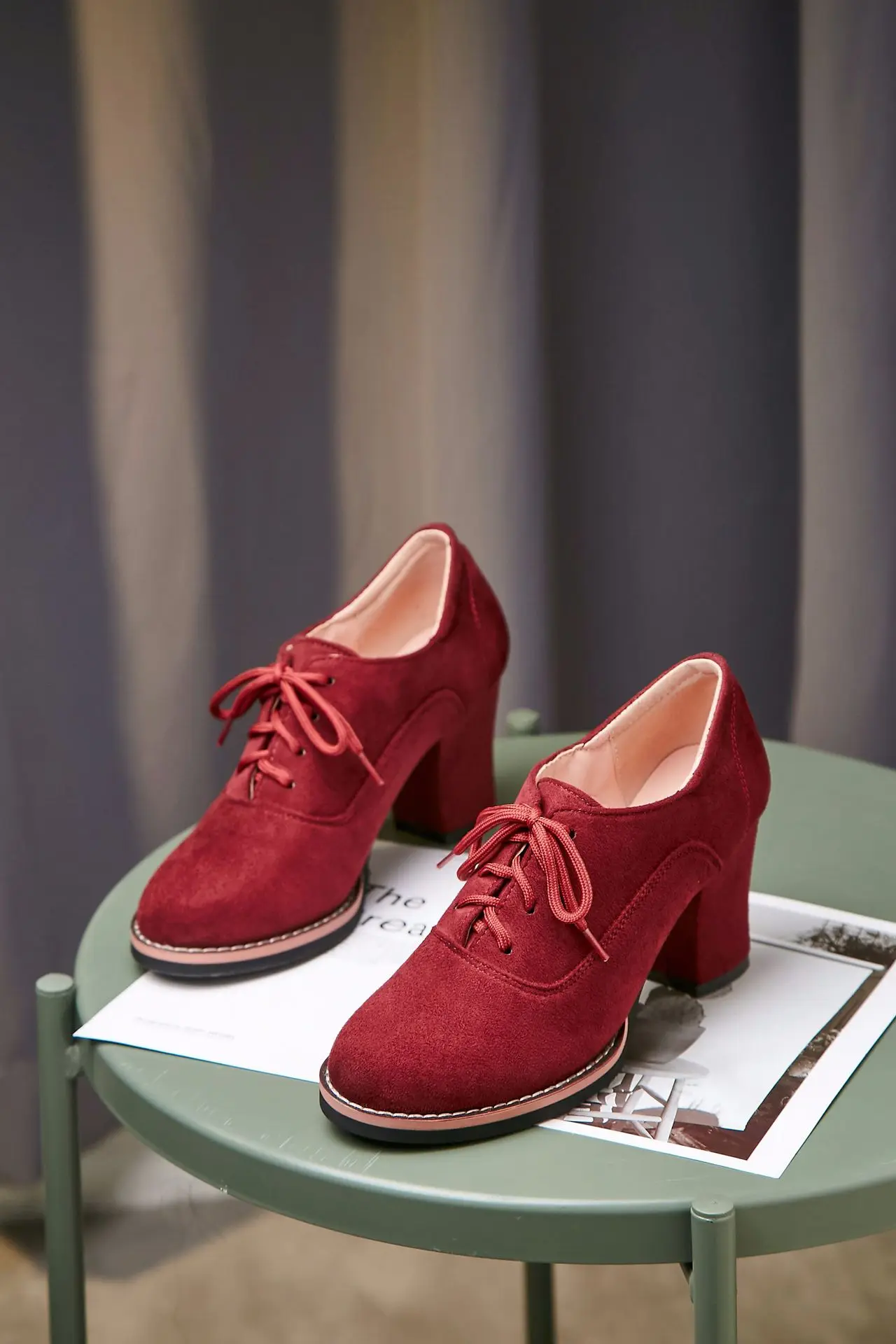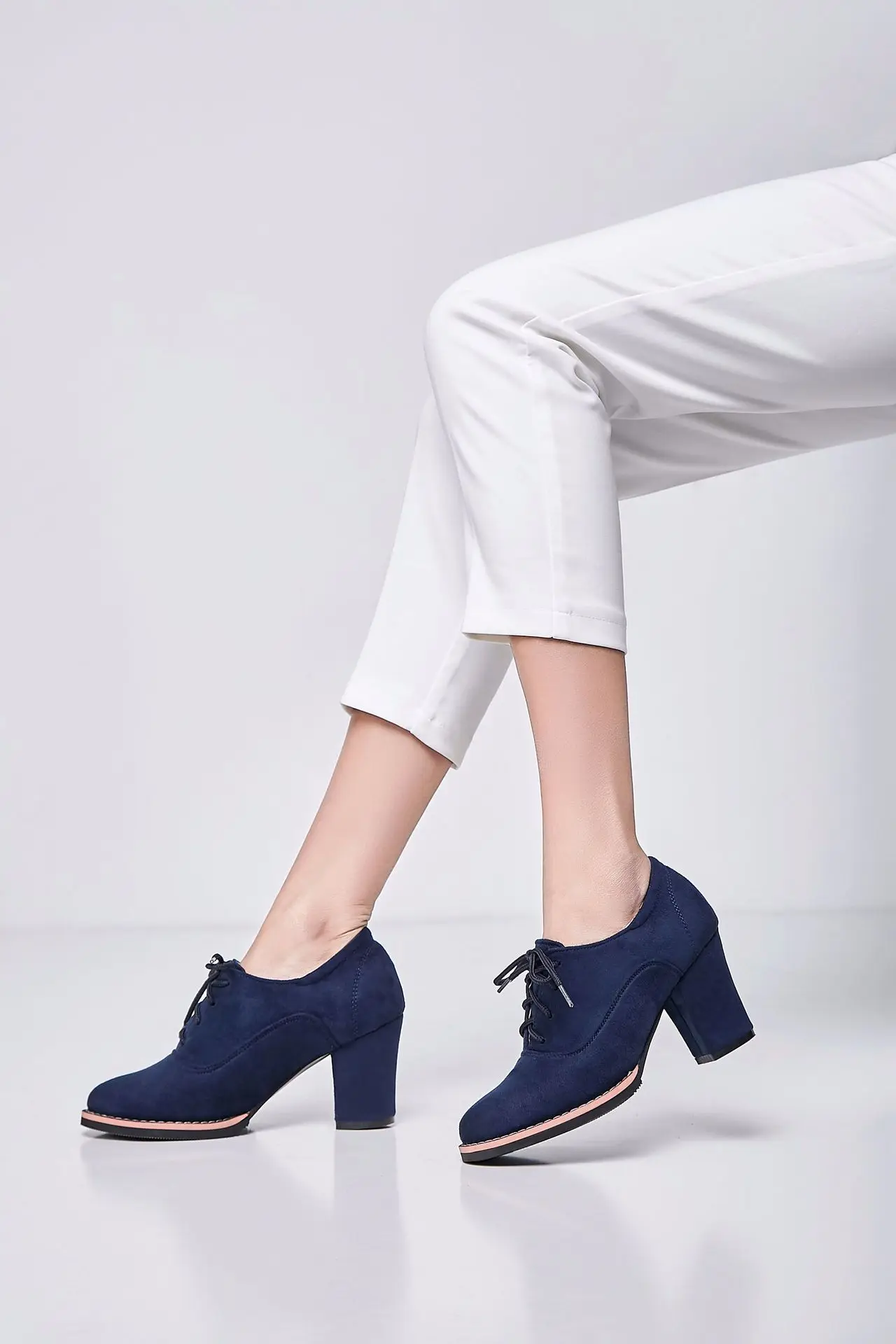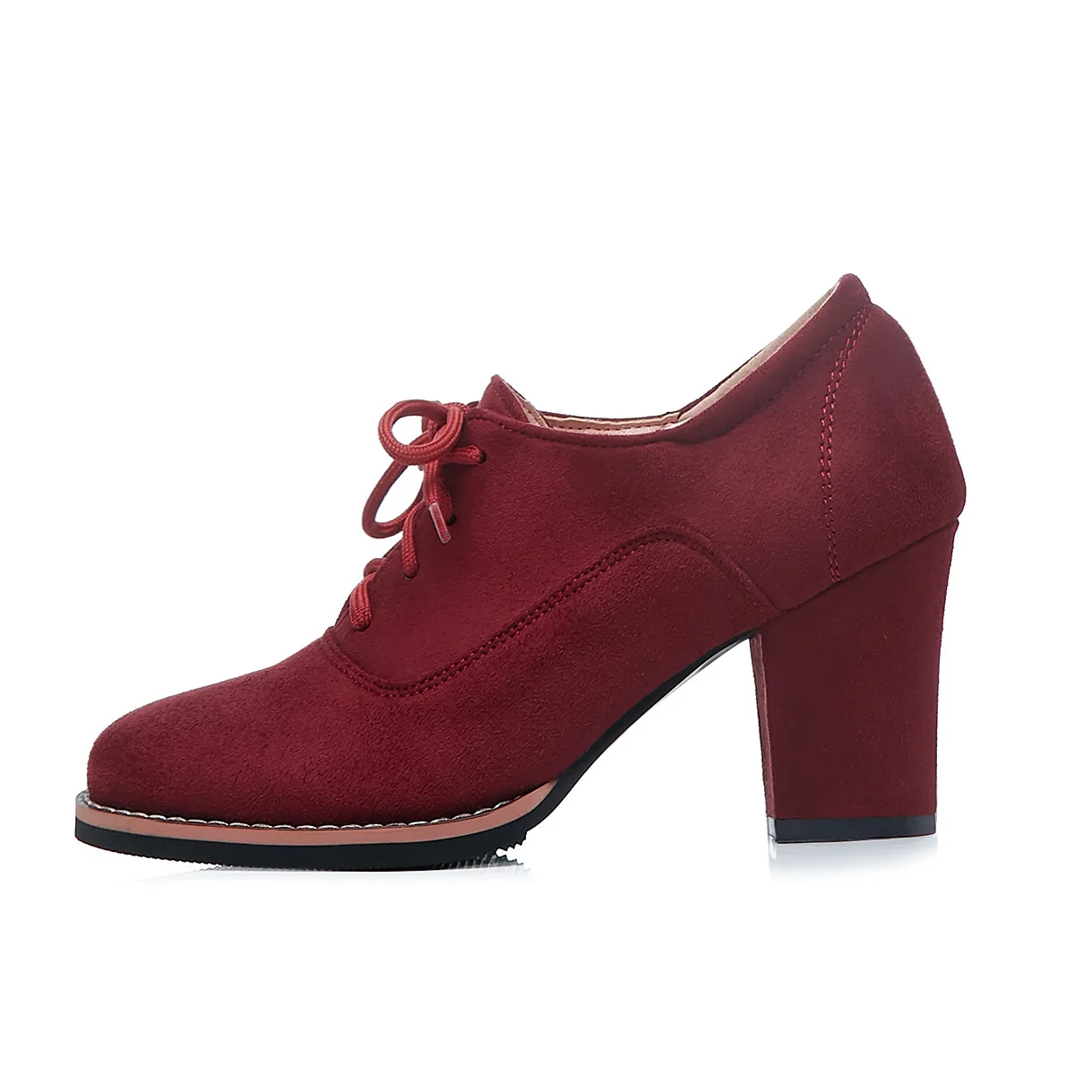 الشتاء النساء أحذية الجلد المدبوغ 7.5 سنتيمتر كعب مربع جولة تو الدانتيل متابعة الشارع نمط الجدة الصلبة الكاحل الخياطة أحذية للنساء جديد أسود