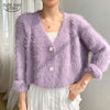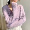 الشتاء قصيرة الأرجواني سترة الخريف جديد المرأة سترة مشغولة من الصوف سترة الإناث الخامس الرقبة البلوز سترة عادية سحب فام معطف 17185