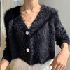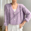 الشتاء قصيرة الأرجواني سترة الخريف جديد المرأة سترة مشغولة من الصوف سترة الإناث الخامس الرقبة البلوز سترة عادية سحب فام معطف 17185