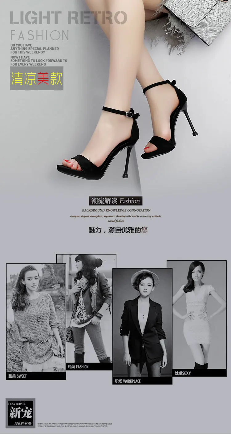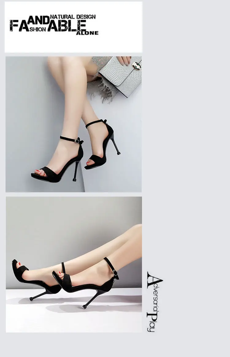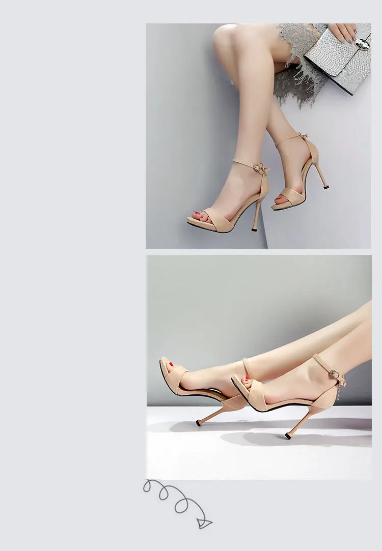 الصيف النساء الصنادل موضة مثير الحلو موجزة الكلاسيكية مشبك حزام 10 سنتيمتر رقيقة عالية الكعب جولة تو أحذية النساء الحفلات 34-39