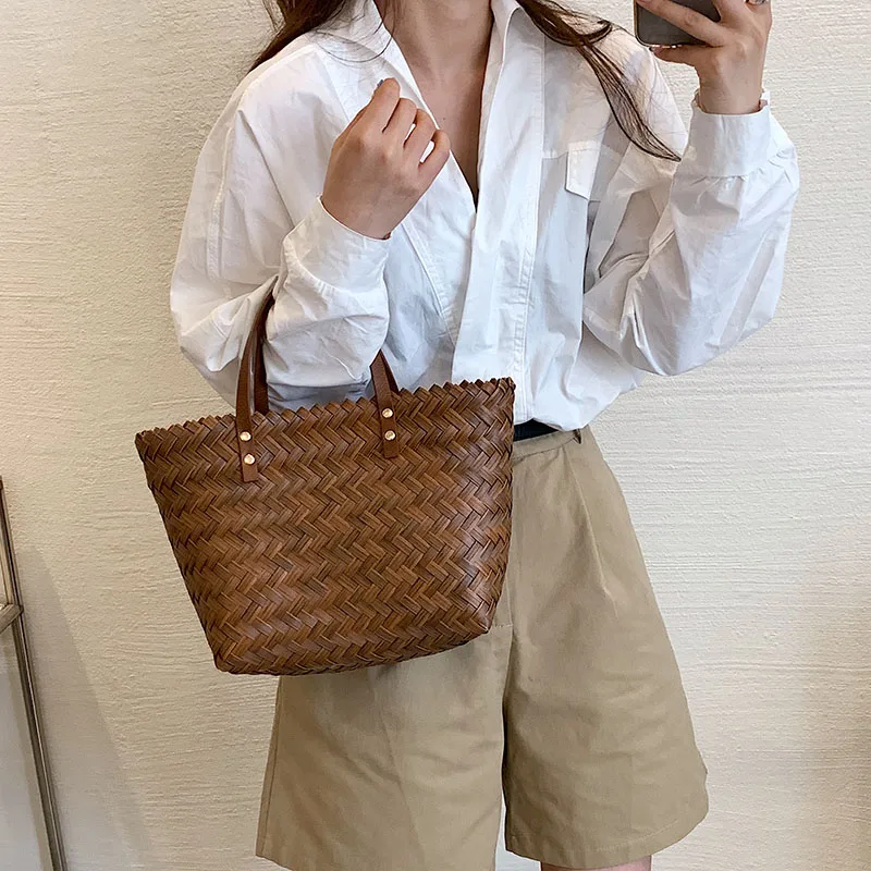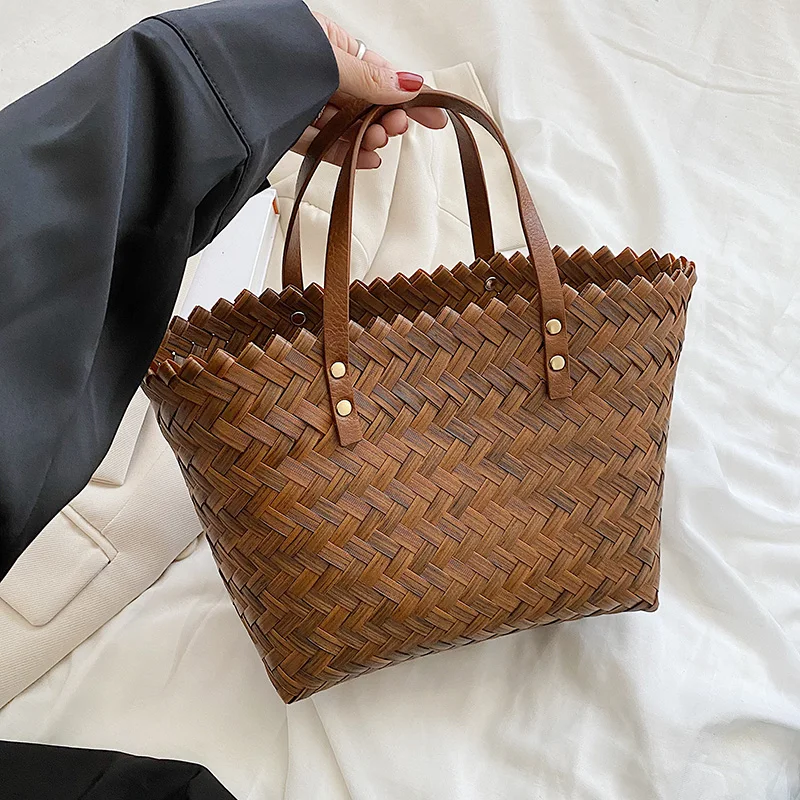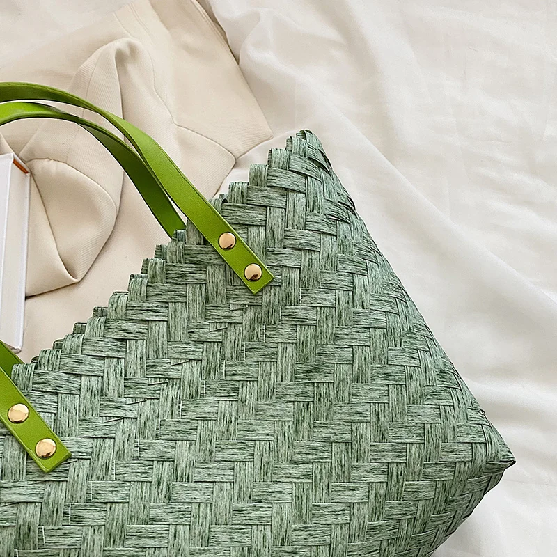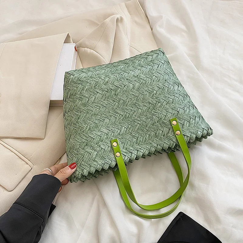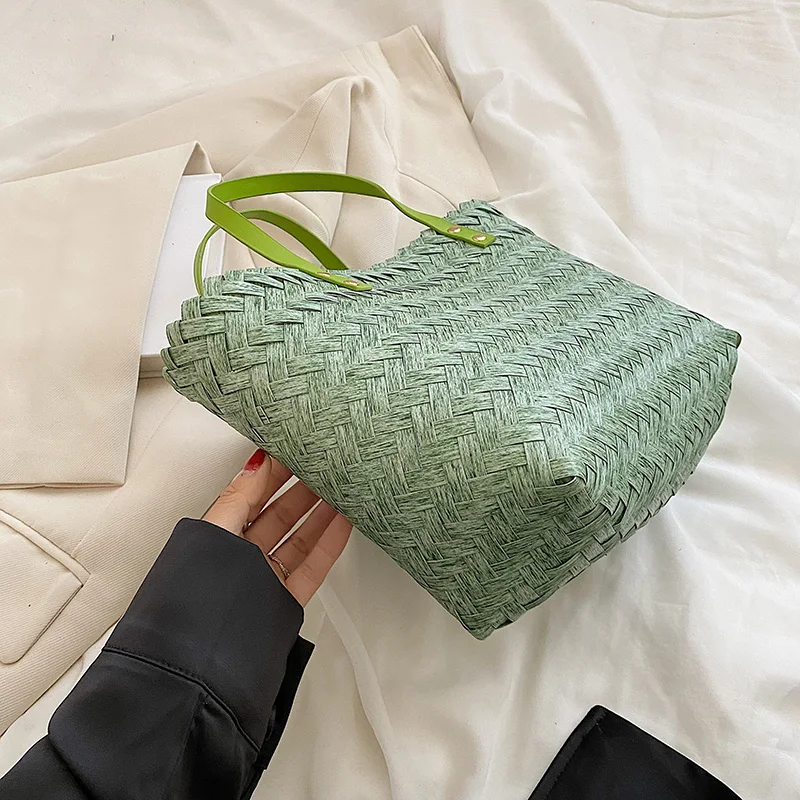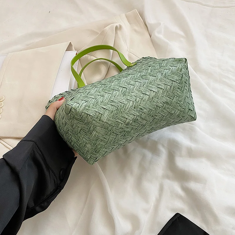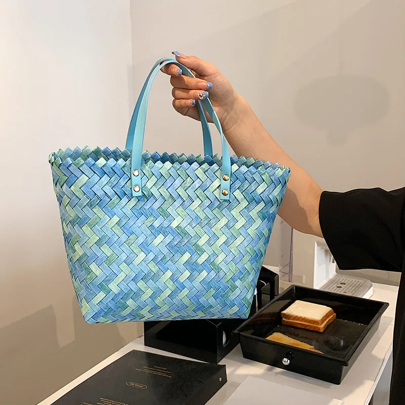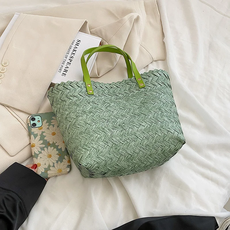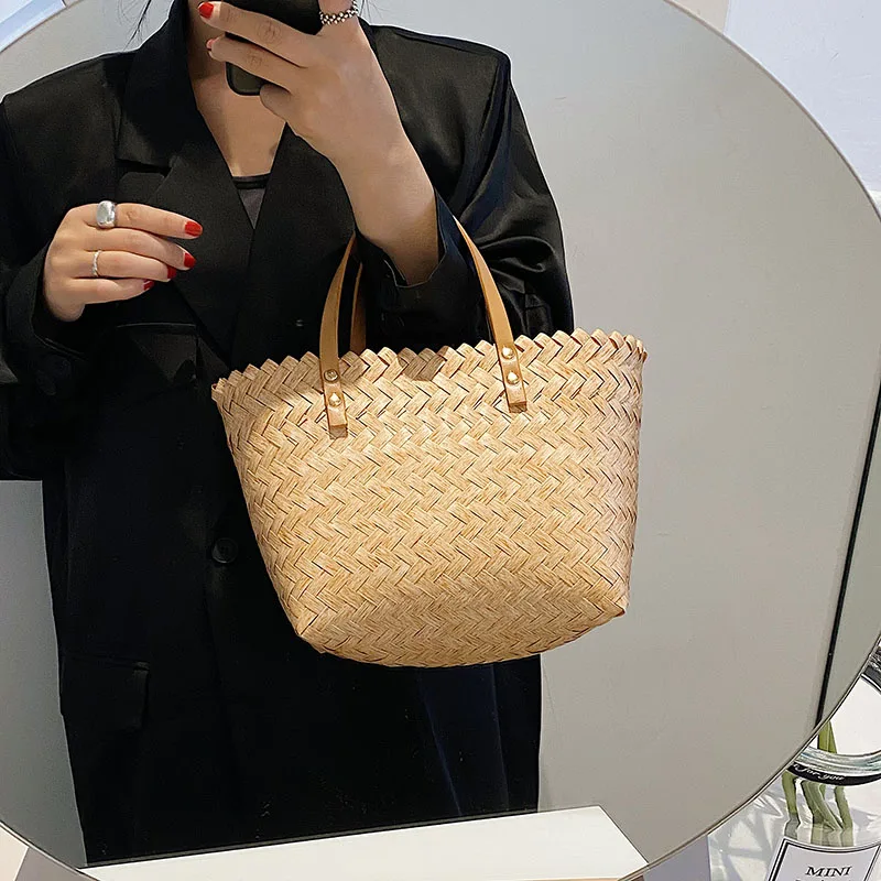 الصيف اليدوية سلة مغزولة القش حقيبة حقيبة كبيرة مفتوحة من أعلى شاطئ البحر عطلة حقيبة كتف عادية اليومية حقيبة تسوق الإناث 2022
