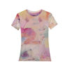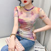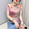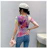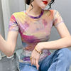 الصيف بسط شبكة تي شيرت المرأة س الرقبة ضئيلة قصيرة الأكمام التعادل مصبوغ مطبوعة تي شيرت الإناث أنيقة