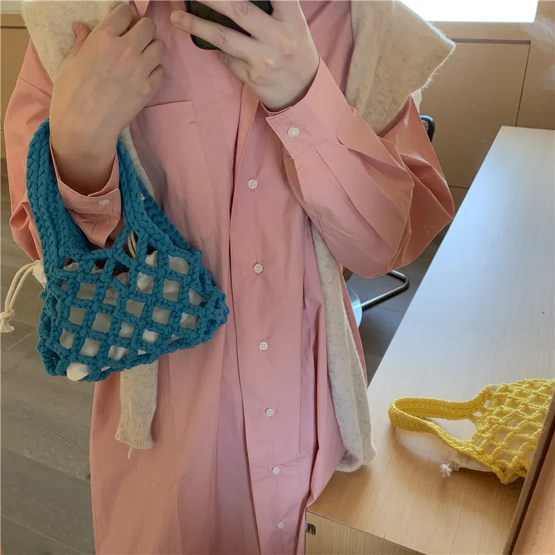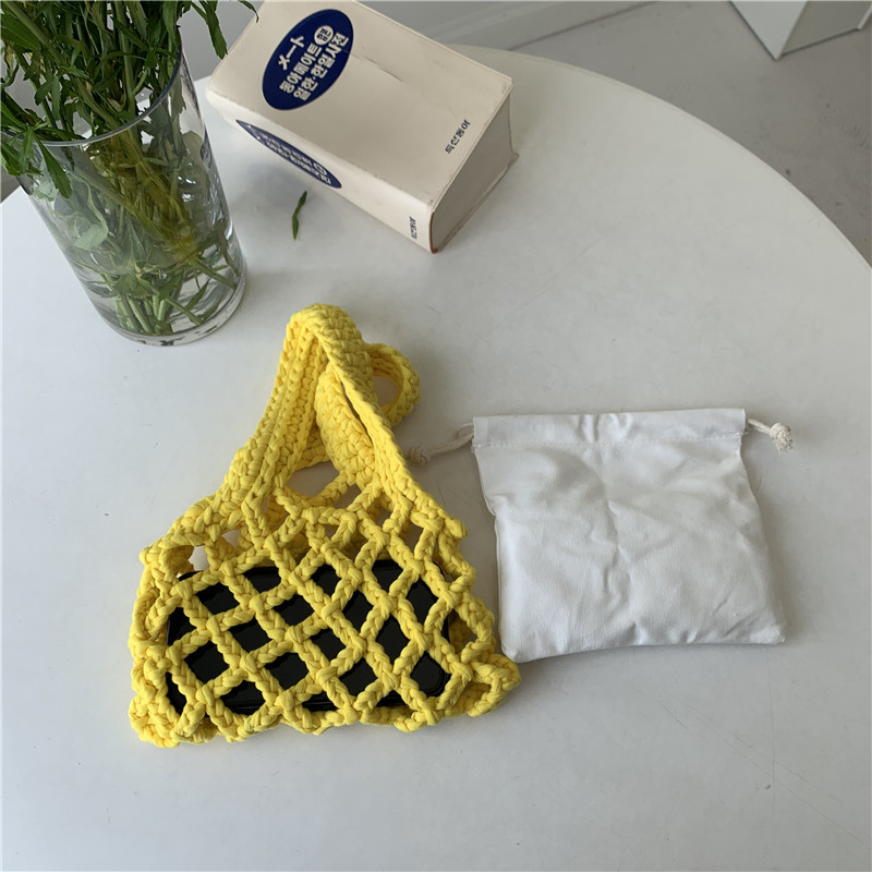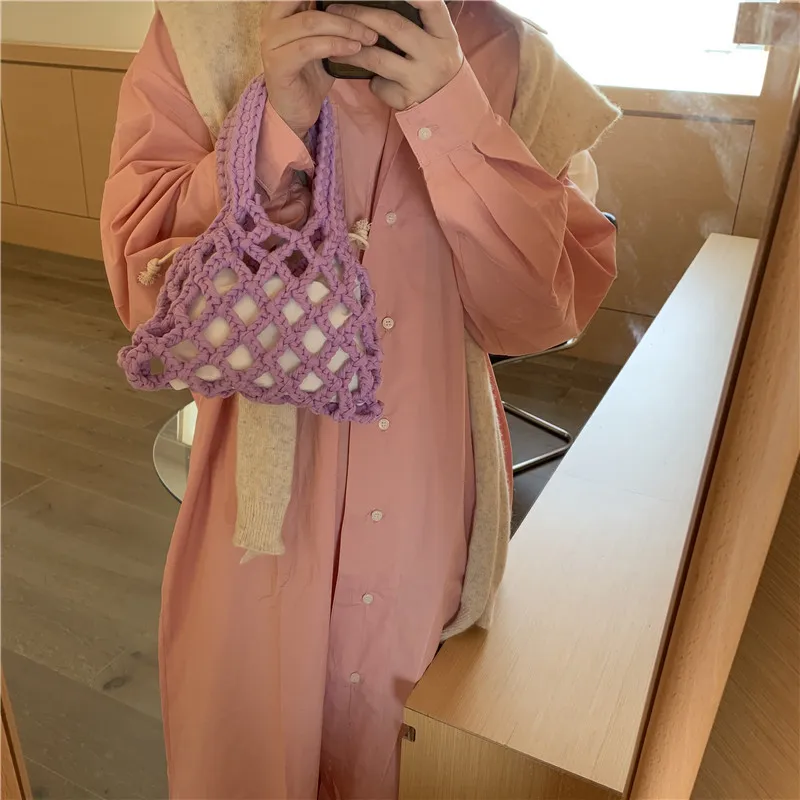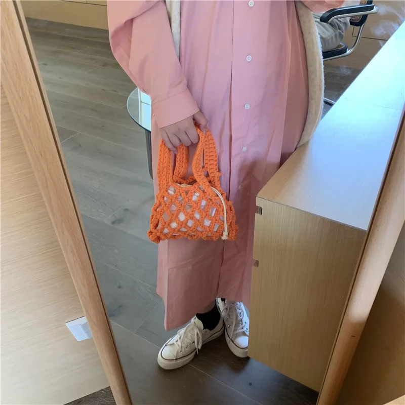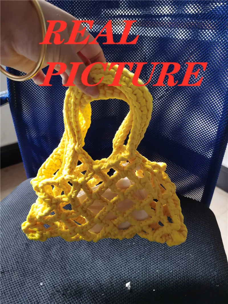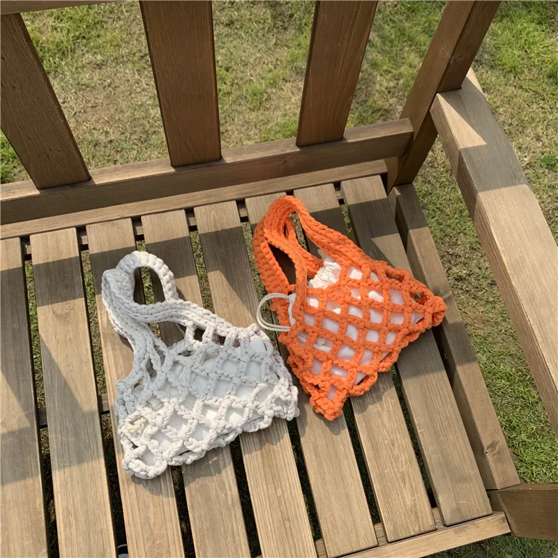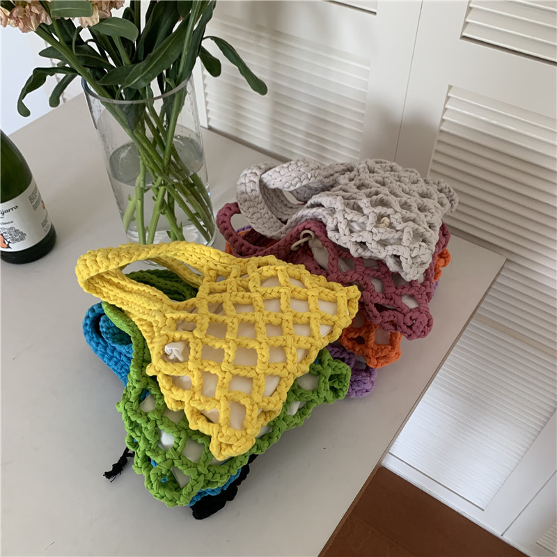 الصيف مشرق اللون القطن حبل المنسوجة المرأة حقيبة يد 2 قطعة شبكة الجوف خارج حقيبة دلو صغير تصميم البوهيمي حقيبة شاطئية الإناث
