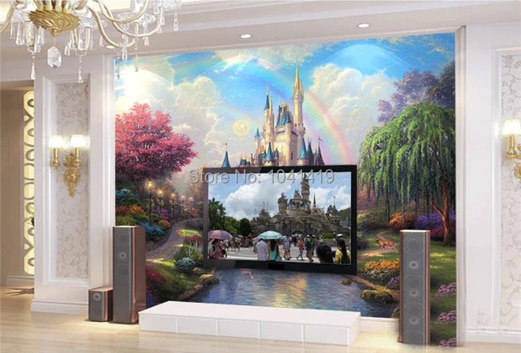 العرف ثلاثية الأبعاد جدارية الفراش غرفة أريكة التلفزيون جدار خلفية الخيال القلعة مدخل غرفة الأطفال جداريات الاطفال ديكور صور خلفية