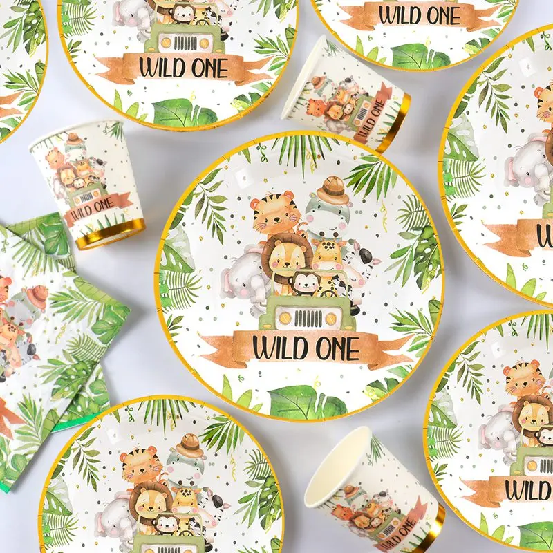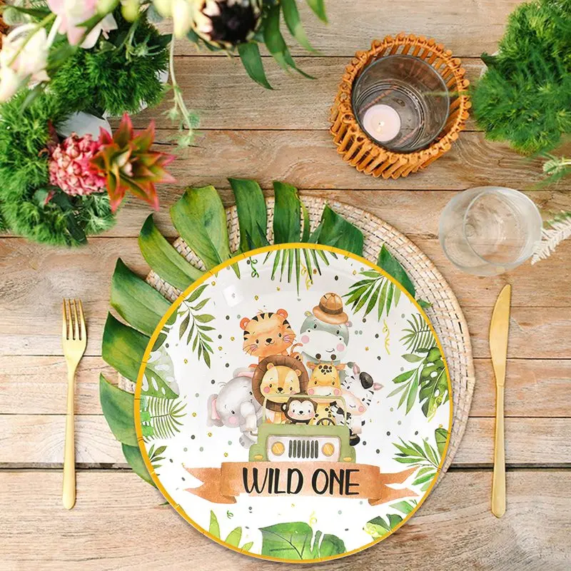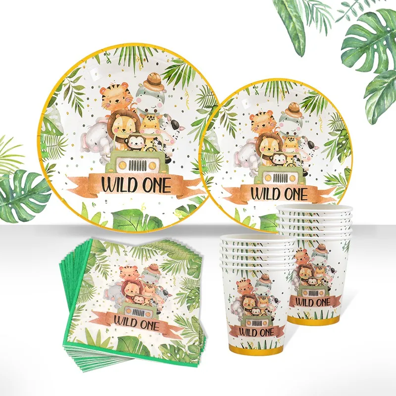 الغابة الحيوان المتاح مجموعة أدوات المائدة الطرف البرية واحد حفلة عيد ميلاد ديكور الاطفال استحمام الطفل سفاري الغابات موضوع لوازم الحفلات
