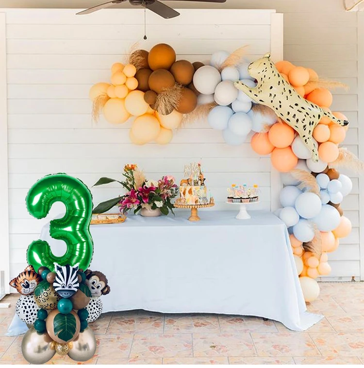 الغابة سفاري حفلة الحيوان بالونات رقمية مجموعة 1st حفلة عيد ميلاد الديكور الغابات بالون مملوء بالهليوم استحمام الطفل بالونز الحيوان