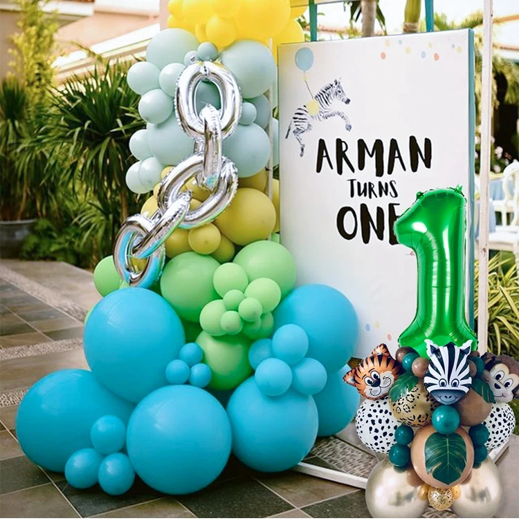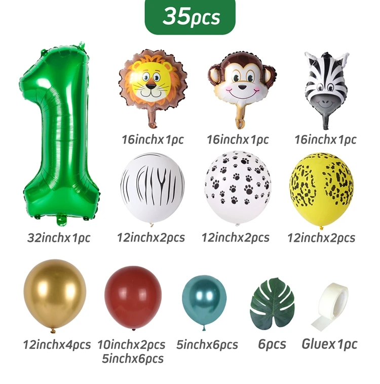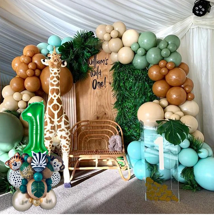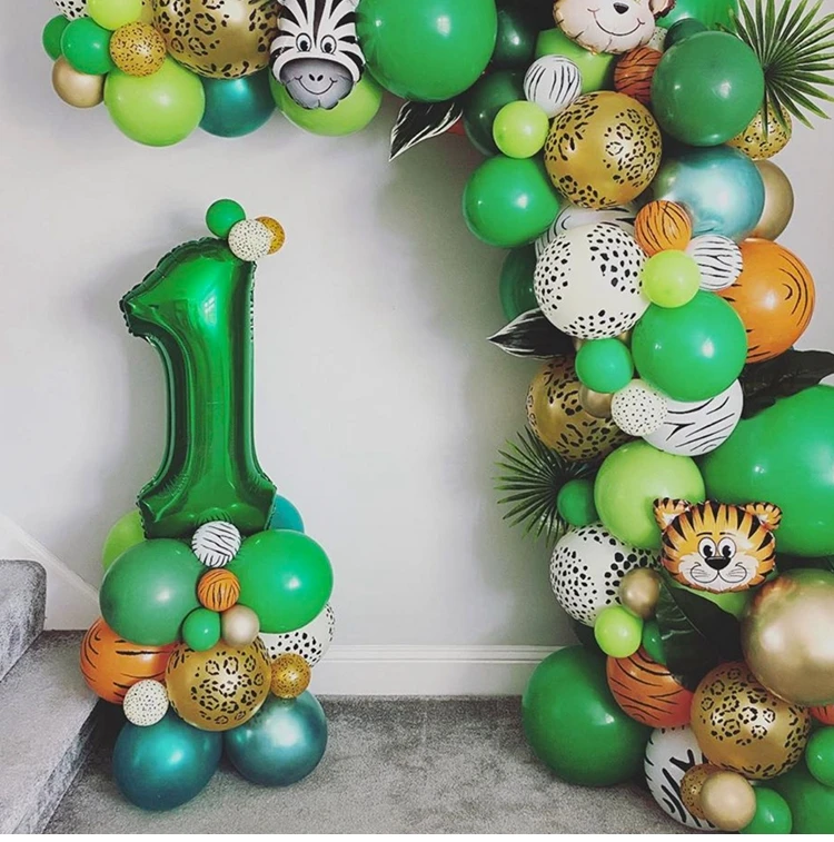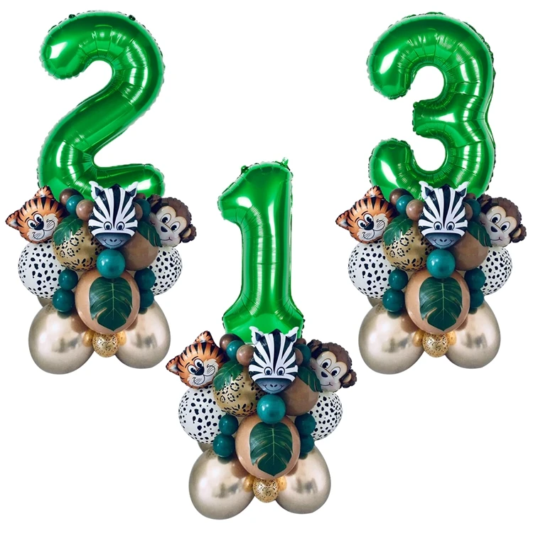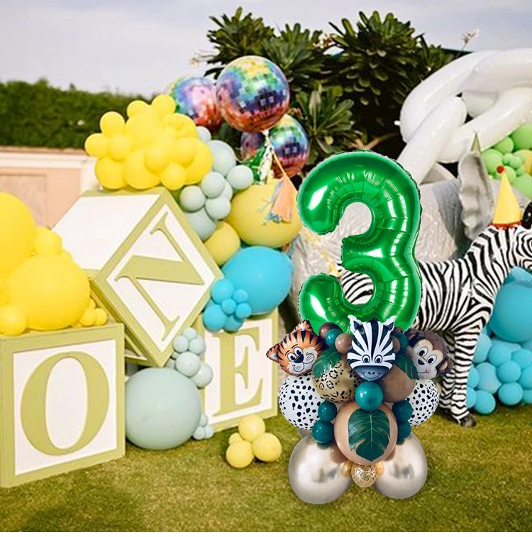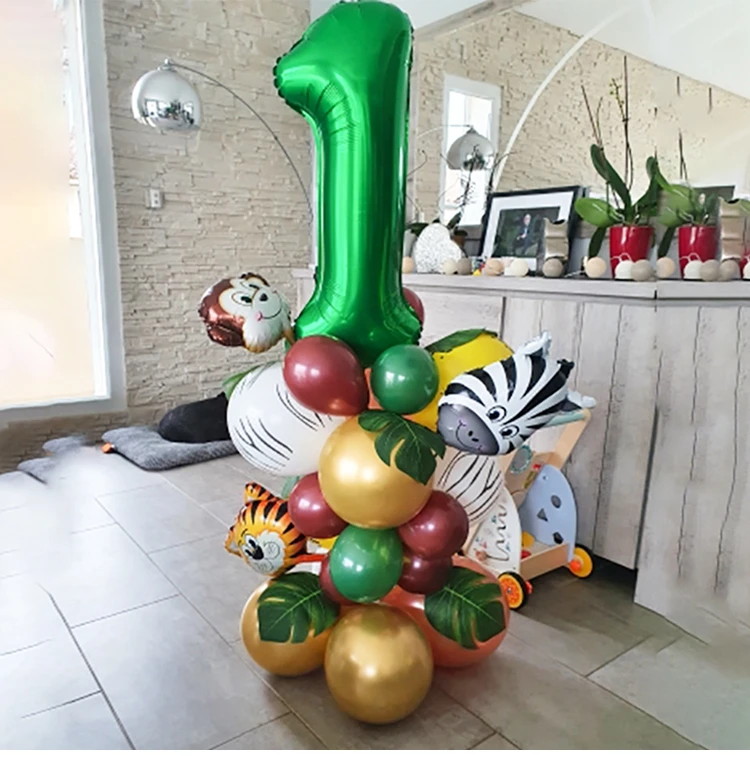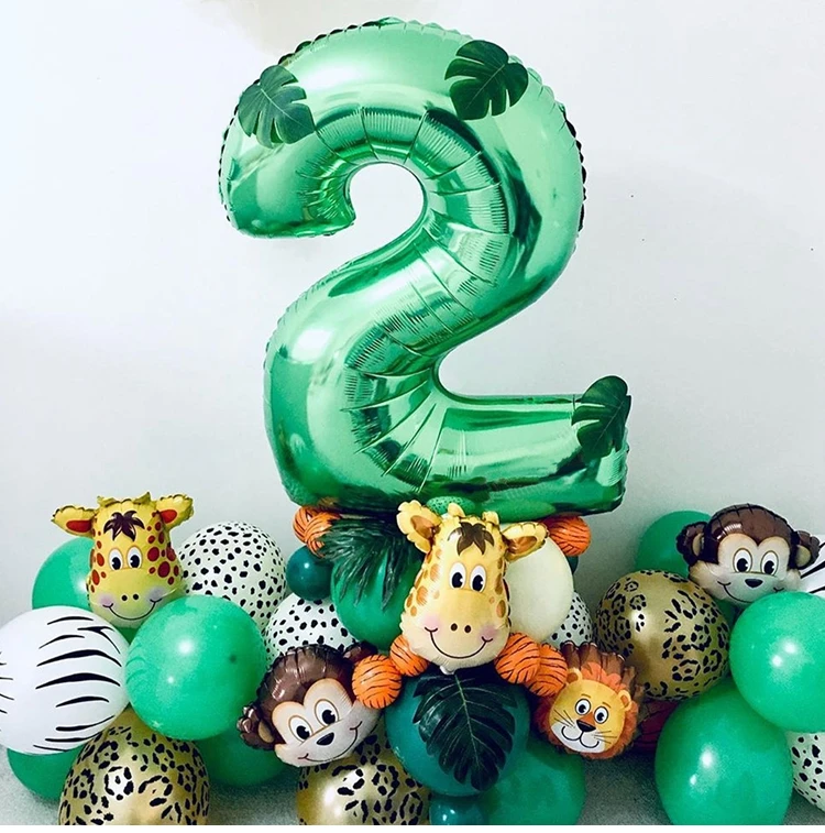 الغابة سفاري حفلة الحيوان بالونات رقمية مجموعة 1st حفلة عيد ميلاد الديكور الغابات بالون مملوء بالهليوم استحمام الطفل بالونز الحيوان