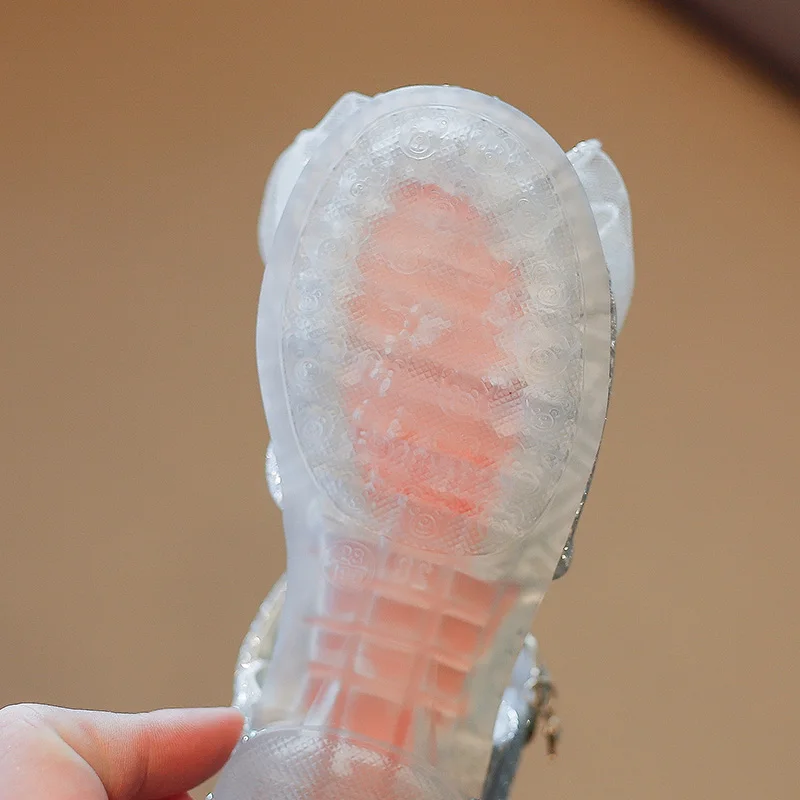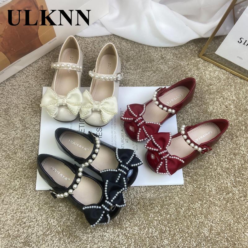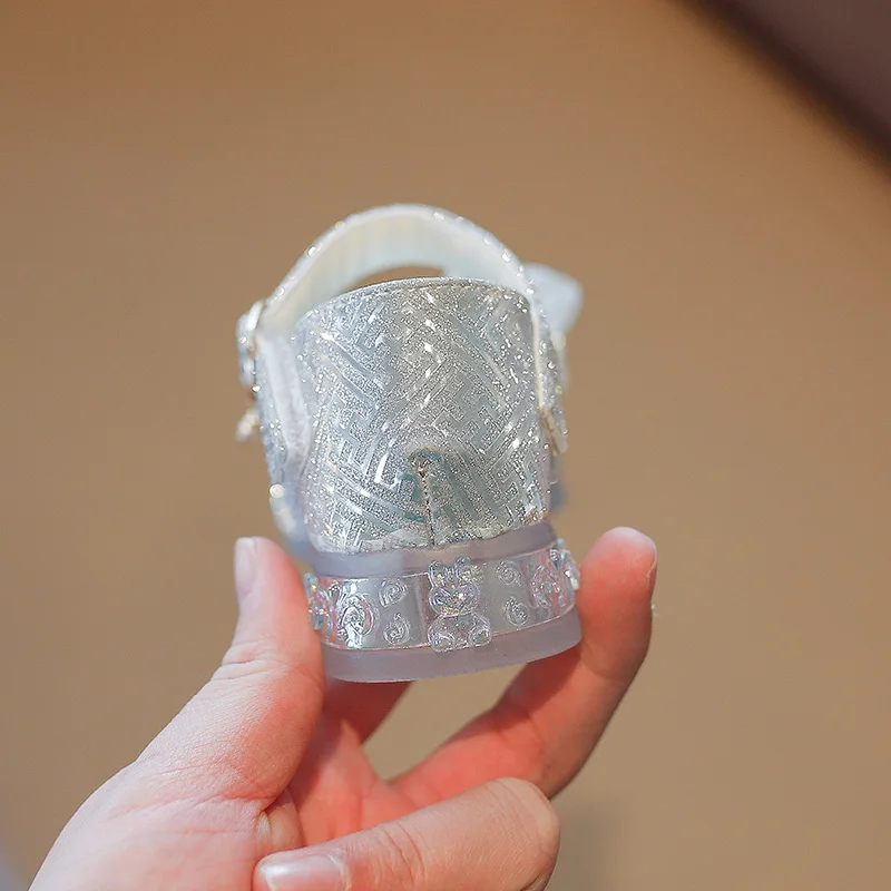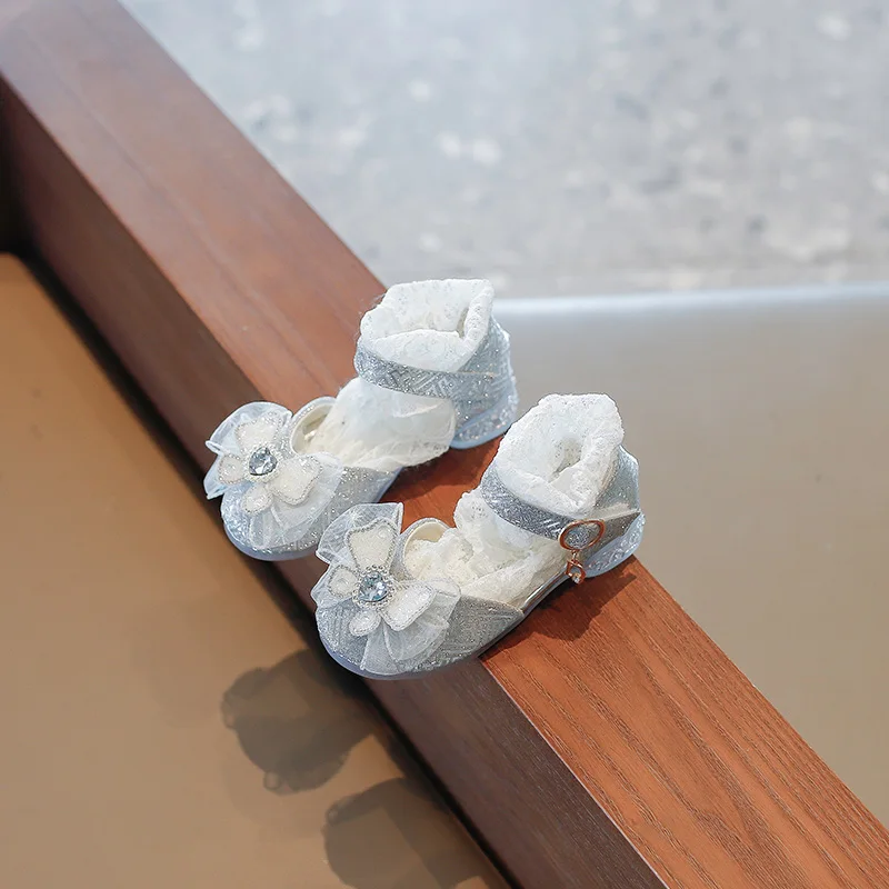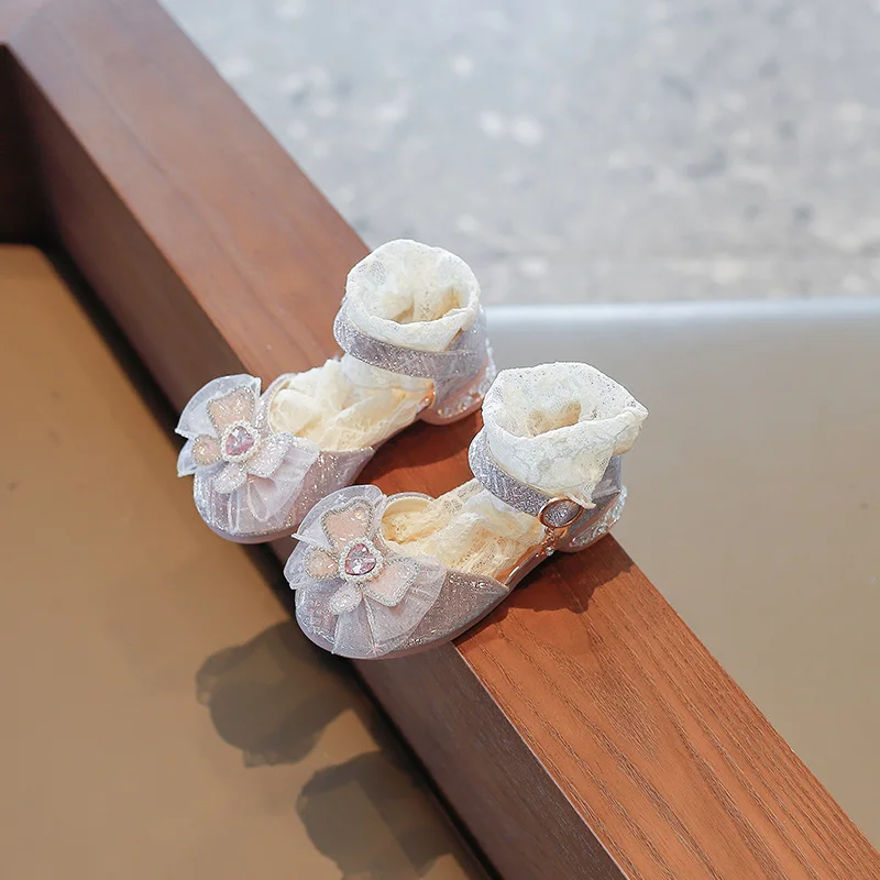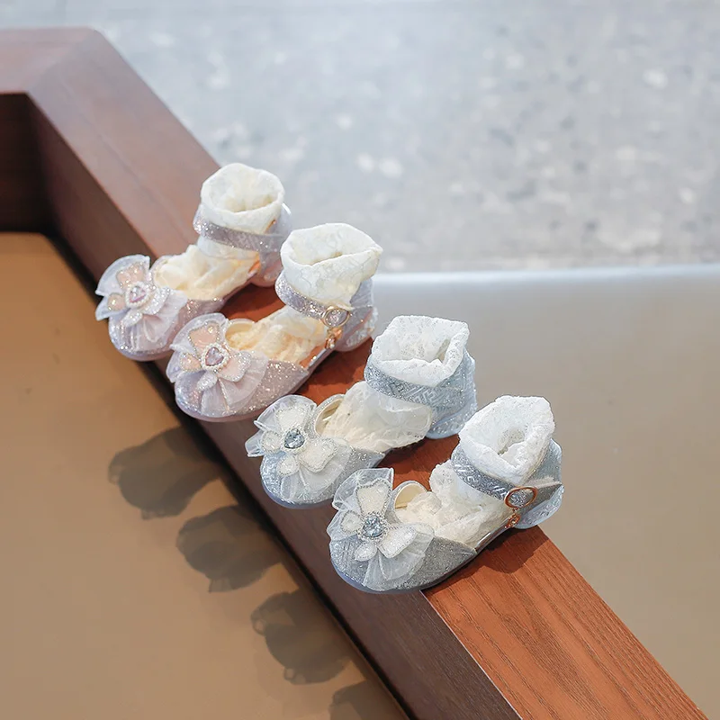 الفتيات الأحذية واحدة 2023 أحذية الأطفال موضة الفضة الشقق الأطفال الأميرة حجر الراين الوردي القوس الطلاب الأحذية