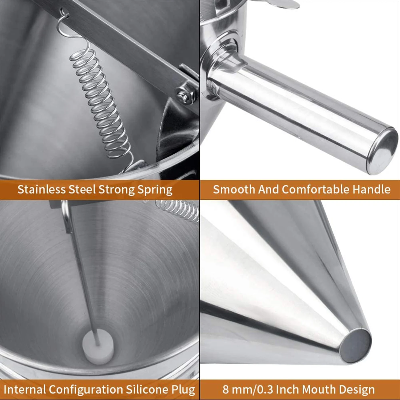 أداة مثالية للخبز للفطائر ، الكعك ، الكعك ، كرات الأخطبوط ؛ قمع الفولاذ المقاوم للصدأ لتوزيع دقيق من الخليط ، صلصة ، المربى ، المرق ، الخ. تعبئة مثالية والبسكويت وفودج قمع المكبس لتلبية احتياجات الطعام الخاصة بك