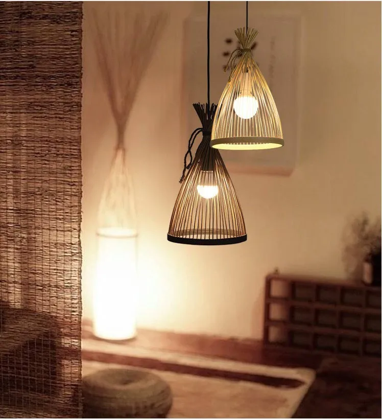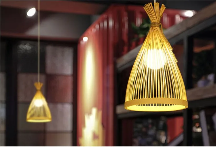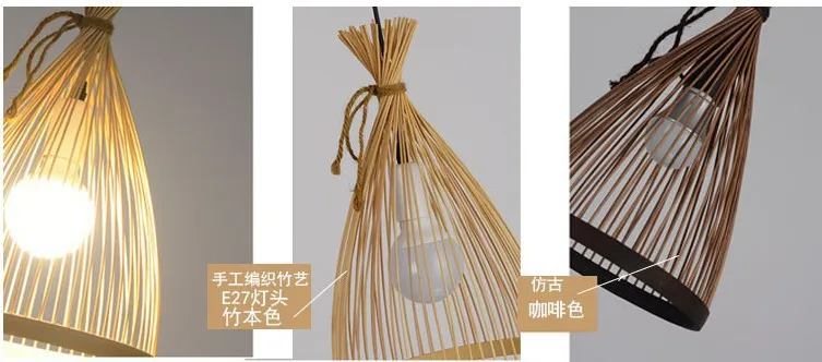 الكلاسيكية قلادة مصباح Bambooo الثريات الخشب ضوء السقف Dia20/25/30 سنتيمتر E27 غرفة الطعام غرفة نوم فانوس القهوة اللون