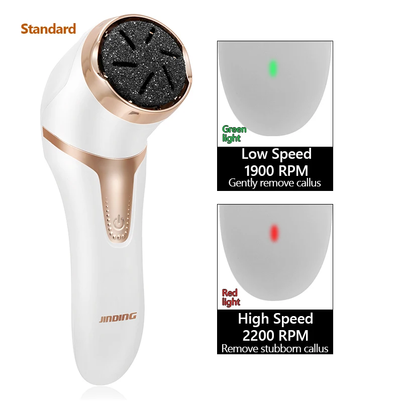 2.【 2 سرعات قابلة للتعديل مع زر 】 2 سرعات قابلة للتعديل ، 1900 دورة في الدقيقة بسرعة منخفضة و 2200 دورة في الدقيقة بسرعة عالية. وضع سرعة منخفضة مناسبة للرعاية اليومية أو الجلد الميت قليلا ، ووضع سرعة عالية مناسبة للنسيج العنيد على كعب. مكشطة القدم الكهربائية من شأنها أن تحل بشكل فعال مشكلة البكتيريا التي تنمو على التقاطع وحماية صحة قدميك.