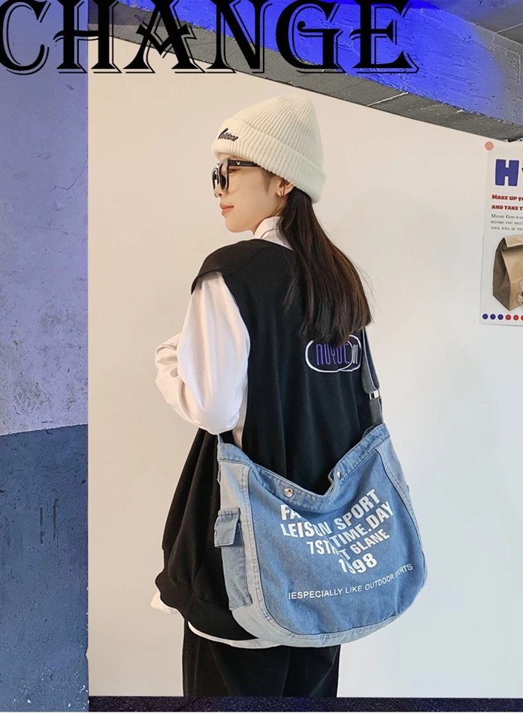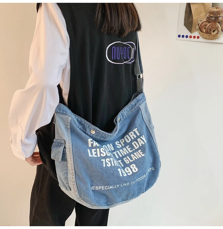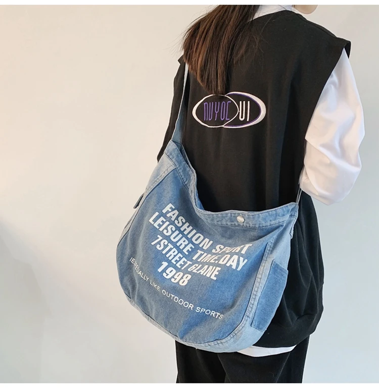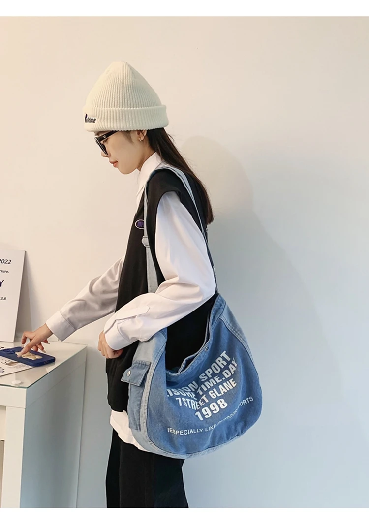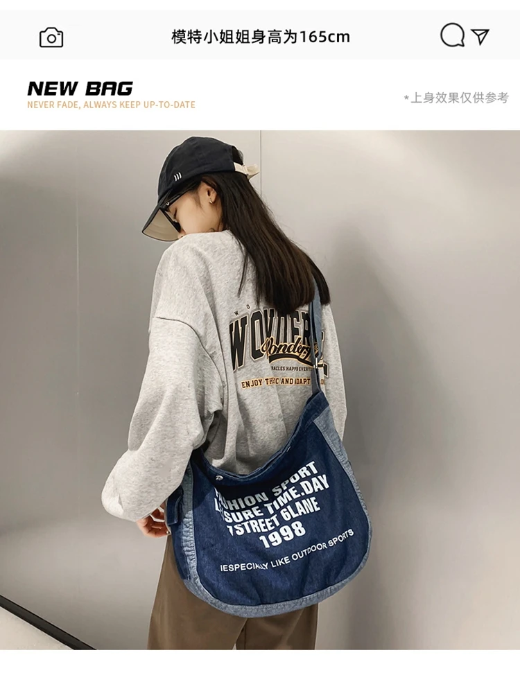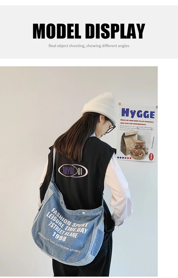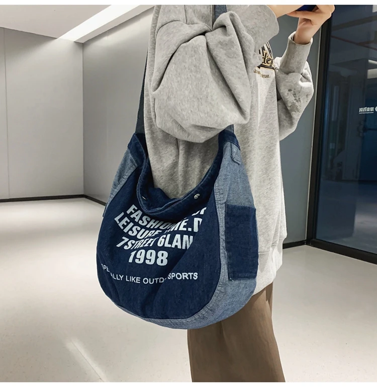 المرأة الدنيم حقيبة الكتف سعة كبيرة عالية الجودة حقيبة يد سيدة بسيطة عادية قائمة جديدة المحمولة حقائب كروسبودي الإناث