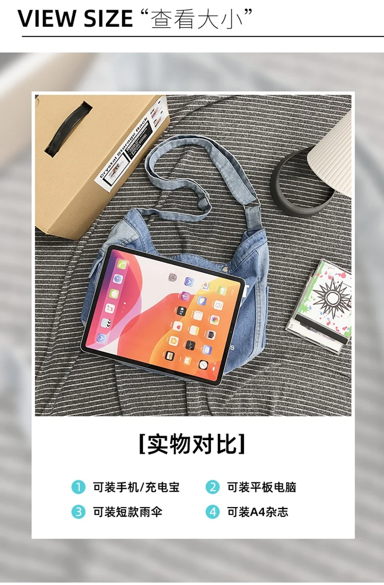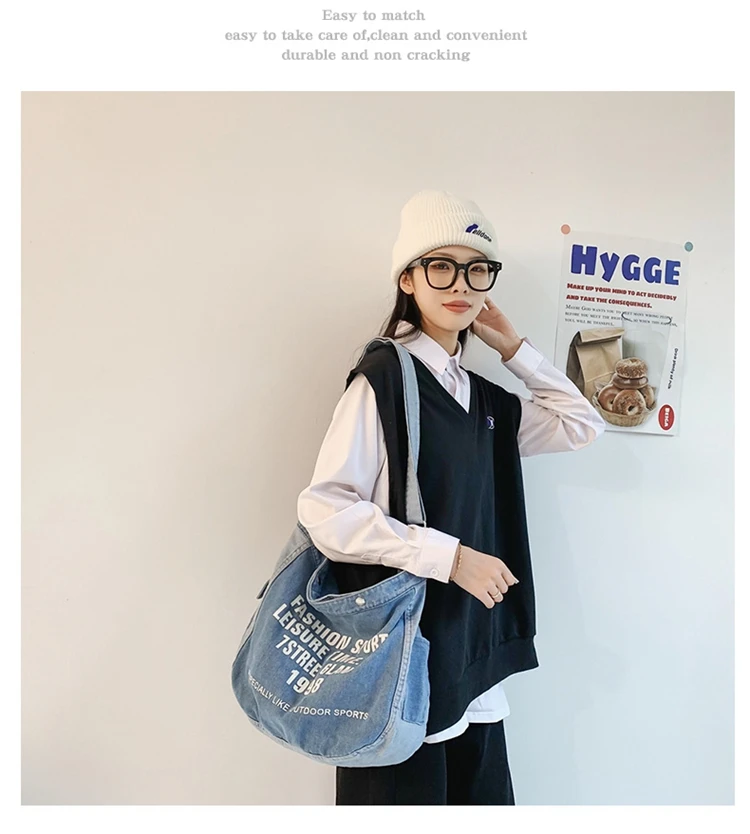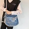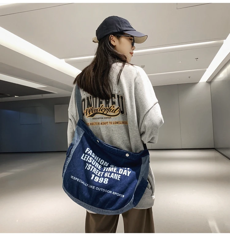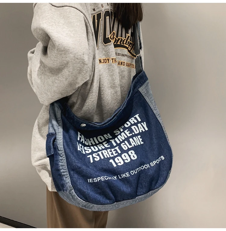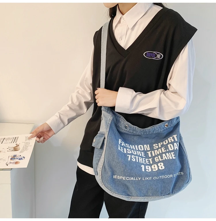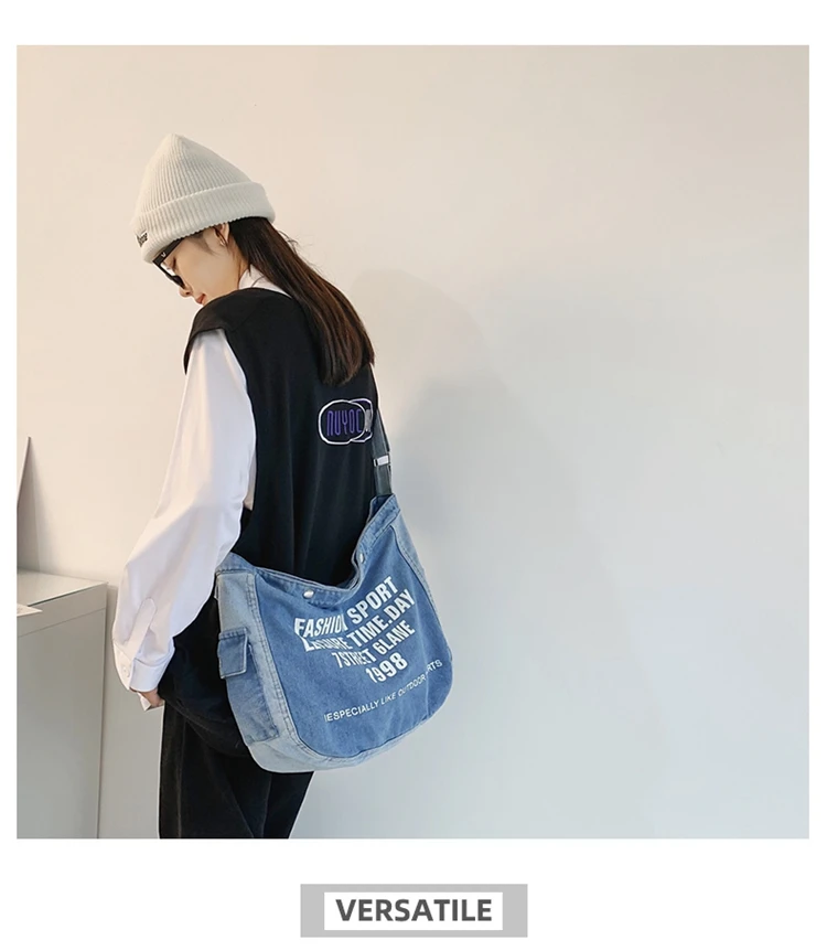 المرأة الدنيم حقيبة الكتف سعة كبيرة عالية الجودة حقيبة يد سيدة بسيطة عادية قائمة جديدة المحمولة حقائب كروسبودي الإناث