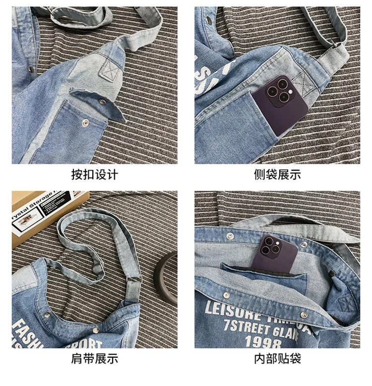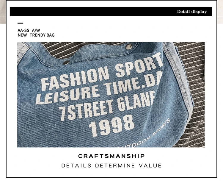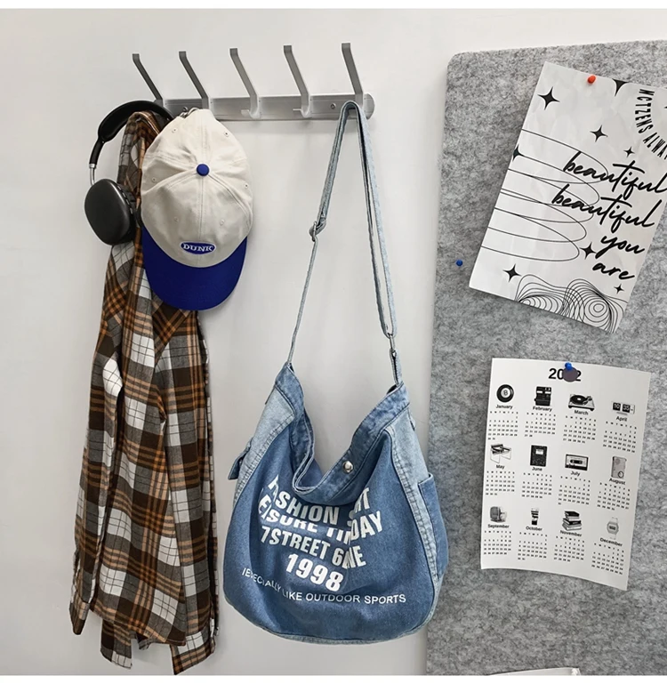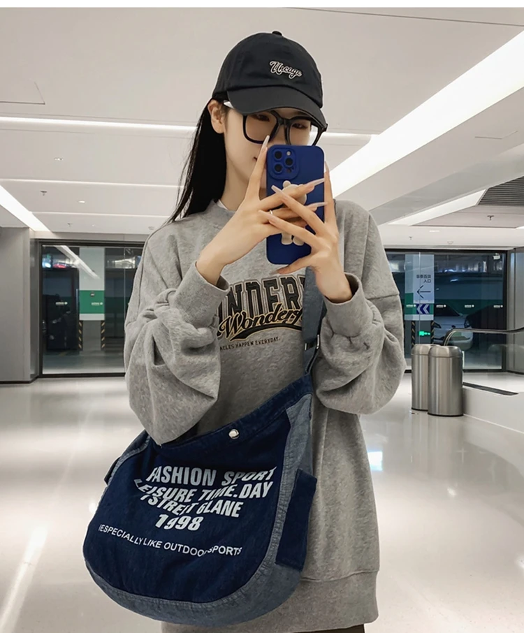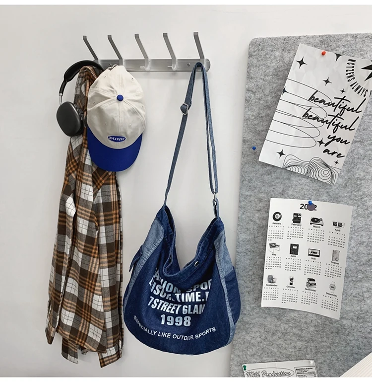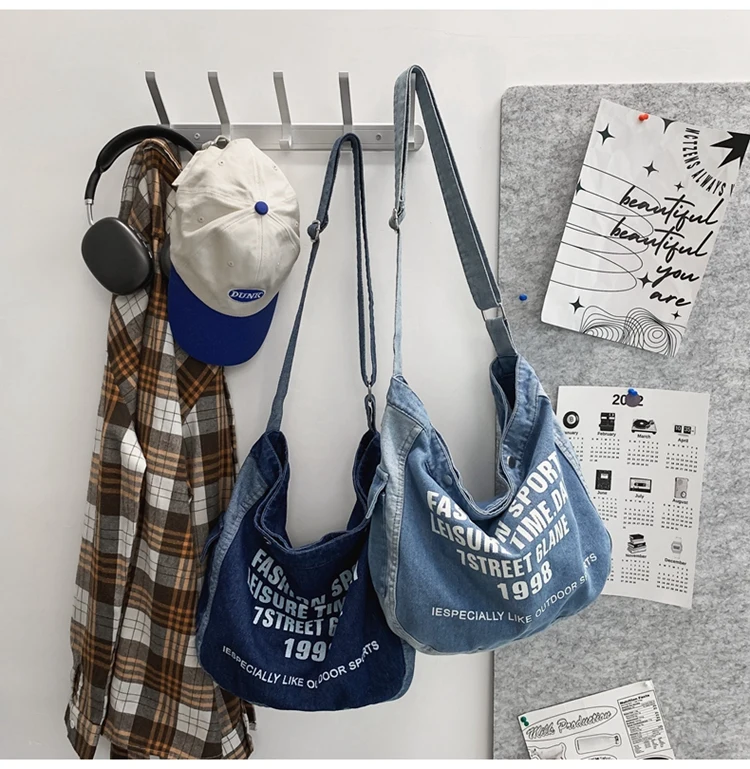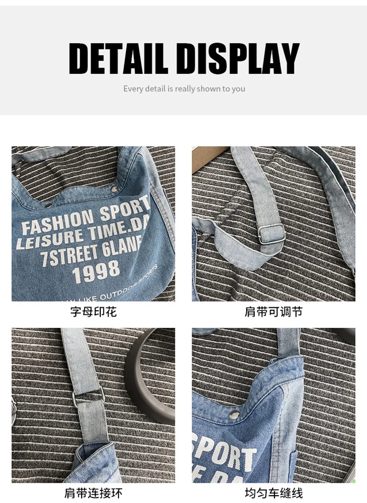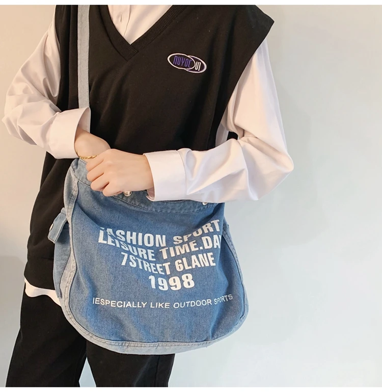 المرأة الدنيم حقيبة الكتف سعة كبيرة عالية الجودة حقيبة يد سيدة بسيطة عادية قائمة جديدة المحمولة حقائب كروسبودي الإناث