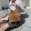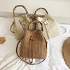 المرأة حقيبة الخيزران مقبض دلو حقيبة موضة المرأة حقيبة القش المنسوجة الكورية موضة حقيبة الكتف عادية الإناث Crossbody رسول