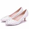 المرأة مثير عالية الكعب أحذية المرأة أحذية الزفاف الدانتيل حجر الراين أشار تو الكعوب رقيقة 5 سنتيمتر 2023 موضة أحذية النساء مضخات